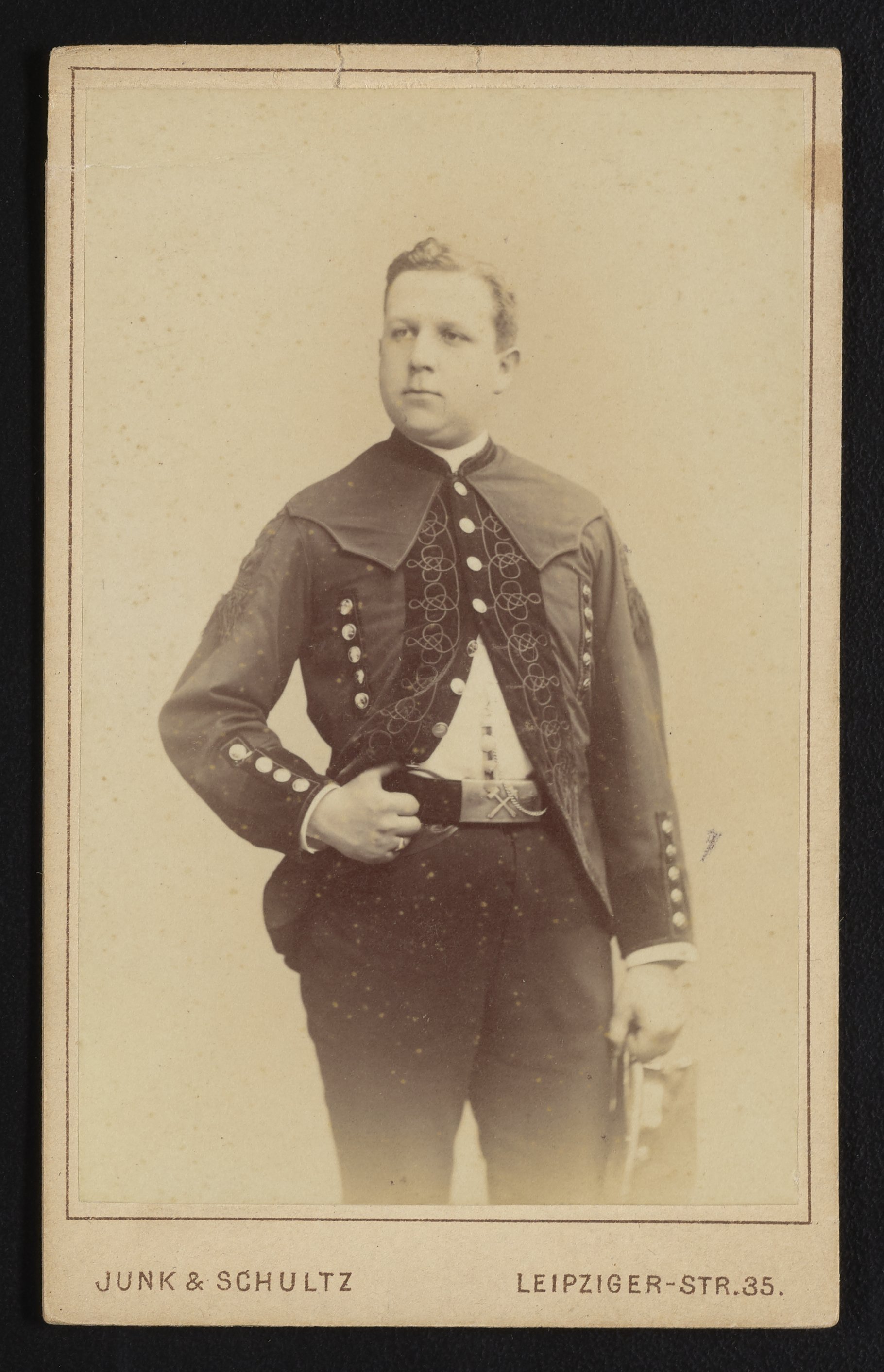 Small JPG1200 x 1863px — 266 KBFull-sized JPG1820 x 2825px — 548 KBOriginal fileTIFF — 1820 x 2825px — 14.8 MBPortrait of Albert Jordan (1865-) dressed as a mountaineer. Jordan was an "oberbergrat" which is a type of government official.