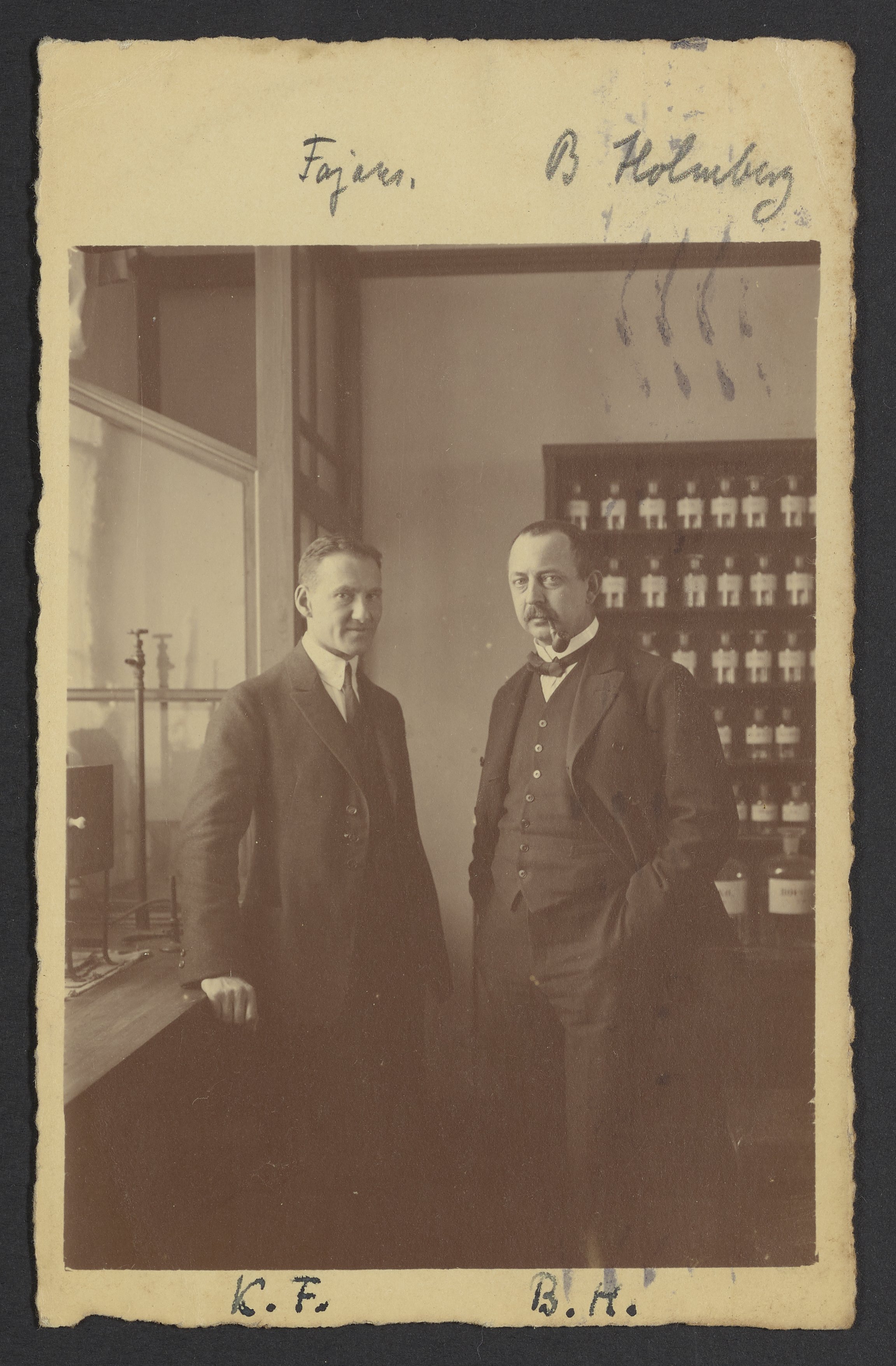 Postcard of Kasimir Fajans and Bror Holmberg sent to Georg Bredig