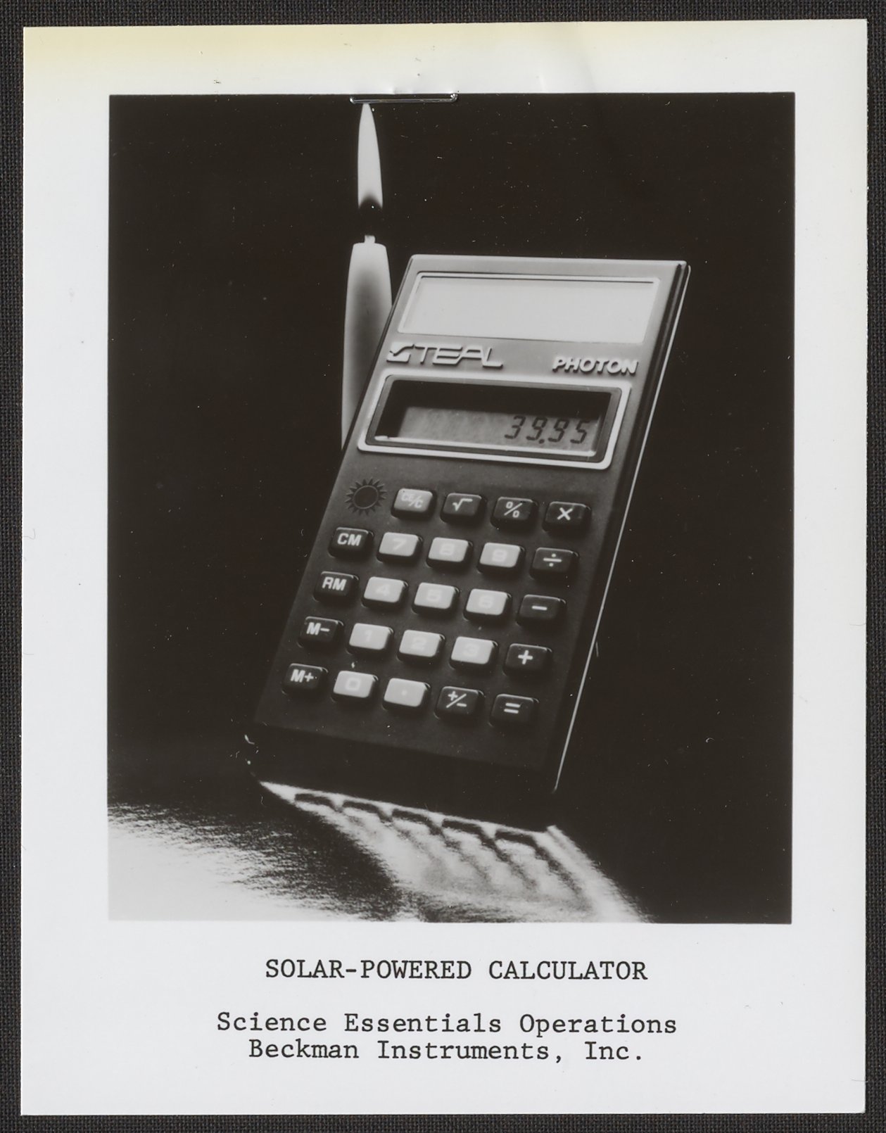 “Solar-Powered Calculator,” circa 1978. Beckman Historical Collection, Box 84. Science History Institute. Philadelphia. https://digital.sciencehistory.org/works/9019s2710.