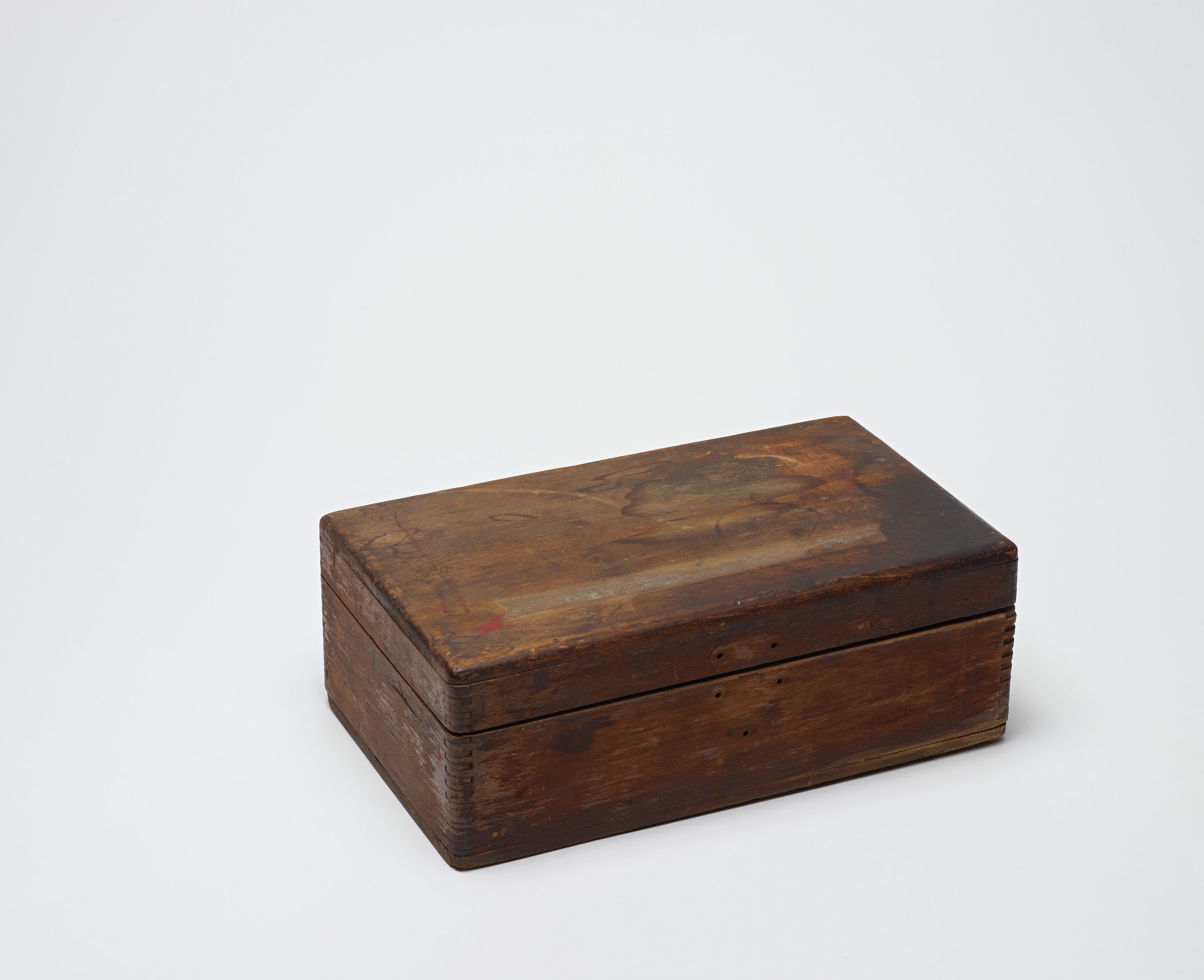 Small JPG1200 x 977px — 123 KBLarge JPG2880 x 2345px — 602 KBFull-sized JPG5393 x 4391px — 1.9 MBOriginal fileTIFF — 5393 x 4391px — 67.8 MBWooden box with metal instrument inside; instructions attached to top of box; instrument has a gauge and three turnable knobs; space along side has a power source and an electrode that is used for measuring; plaque on top left corner identifies instrument, maker, and serial number.