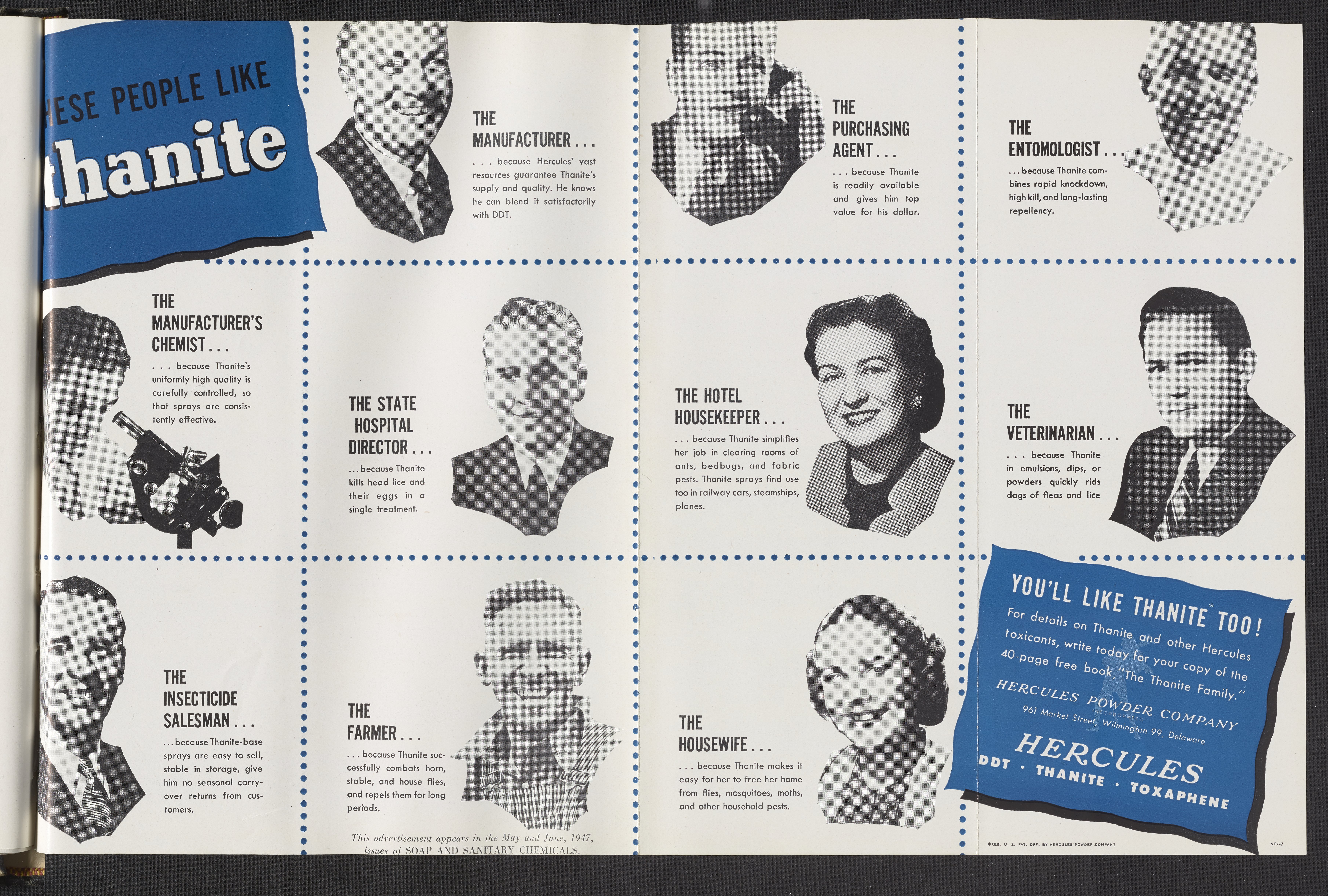 Hercules Incorporated. “These People Like Thanite...You'Ll Like Thanite Too!” 1947 Hercules Advertisements, 1947. Records of Hercules Incorporated, Volume 1947. Science History Institute. Philadelphia. https://digital.sciencehistory.org/works/9593tv76n.