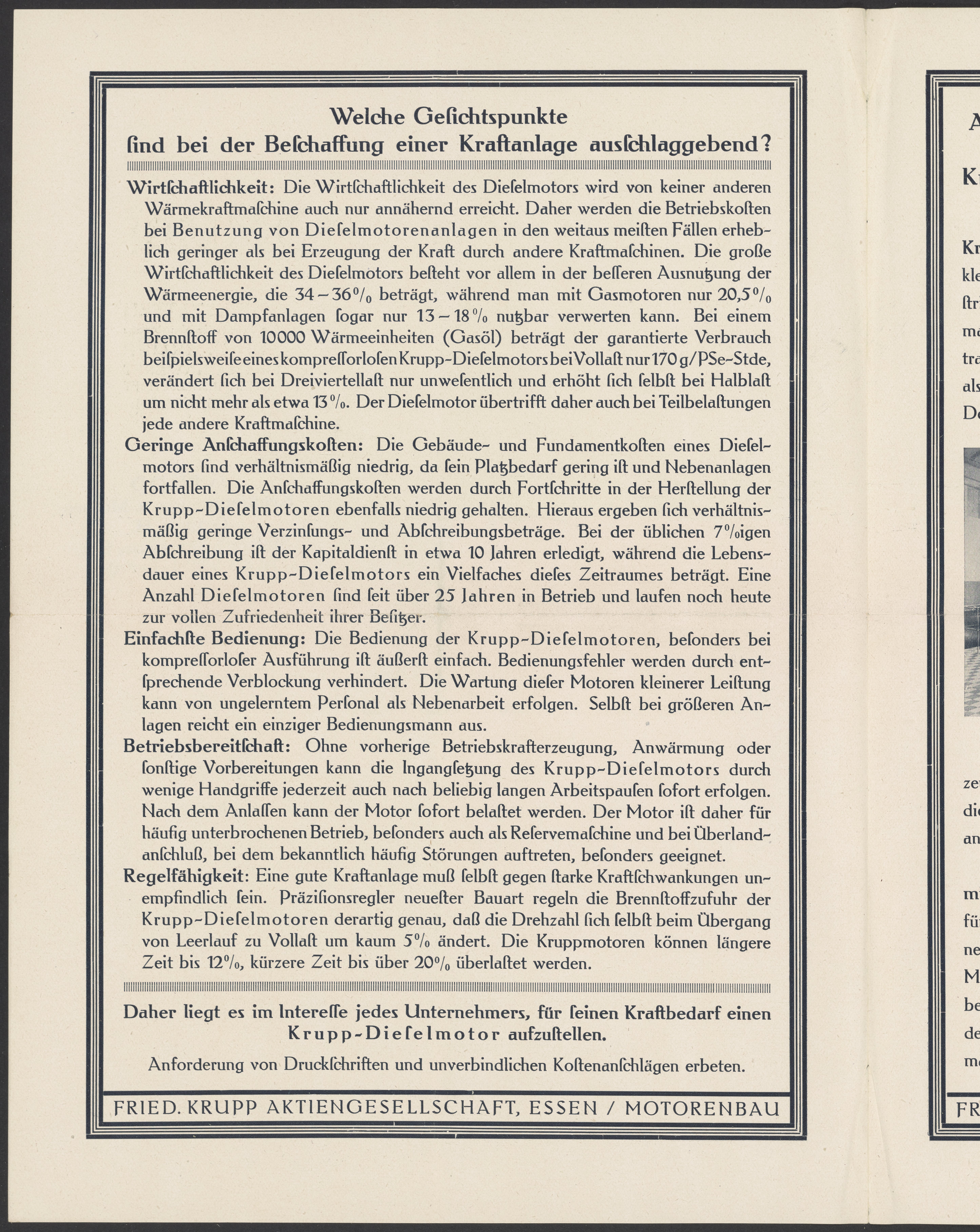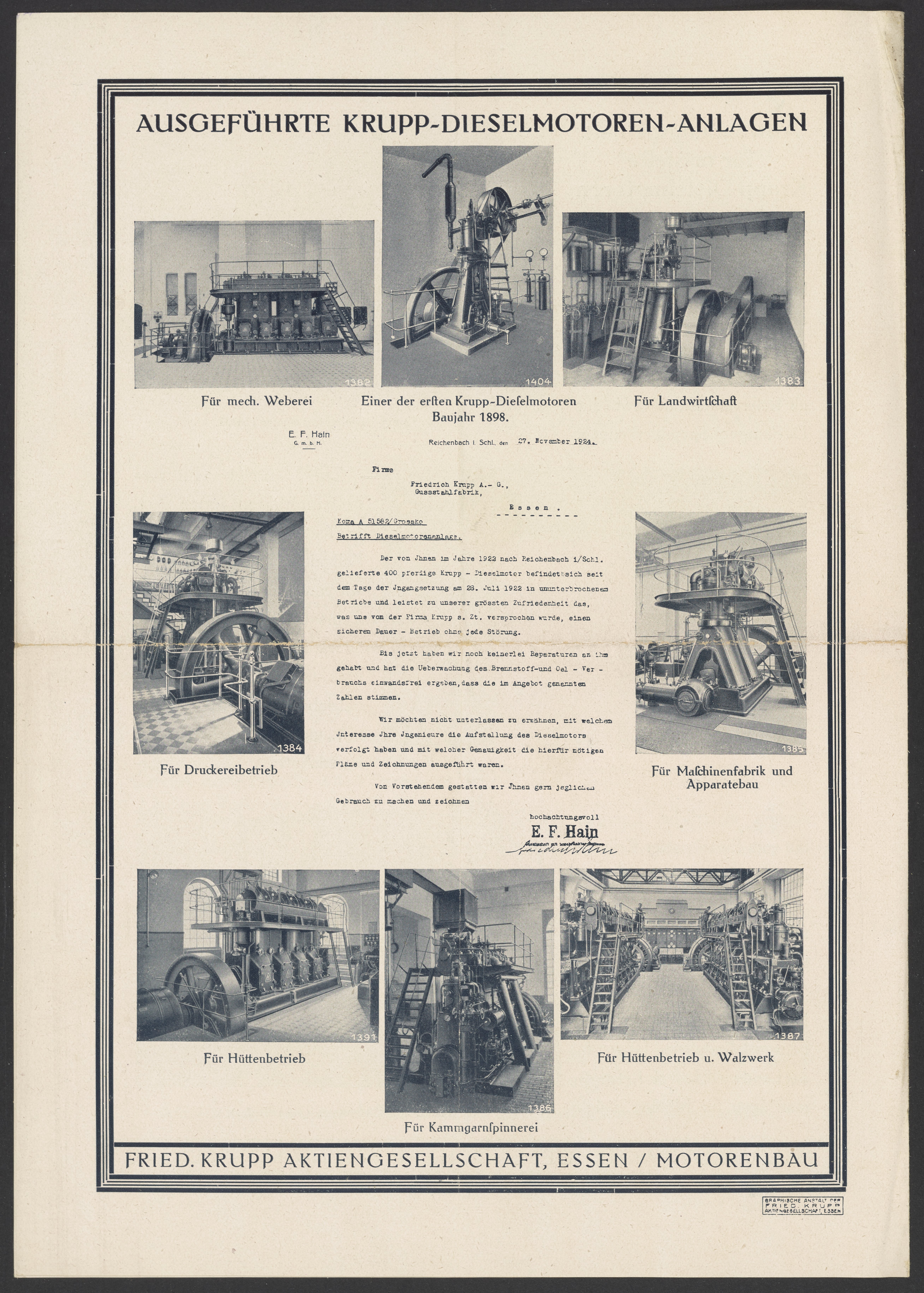 Fried. Krupp AG. “Krupp Dieselmotoren,” circa 1925. Papers of Georg and Max Bredig, Box 3, Folder 3. Science History Institute. Philadelphia. https://digital.sciencehistory.org/works/982u1pf.