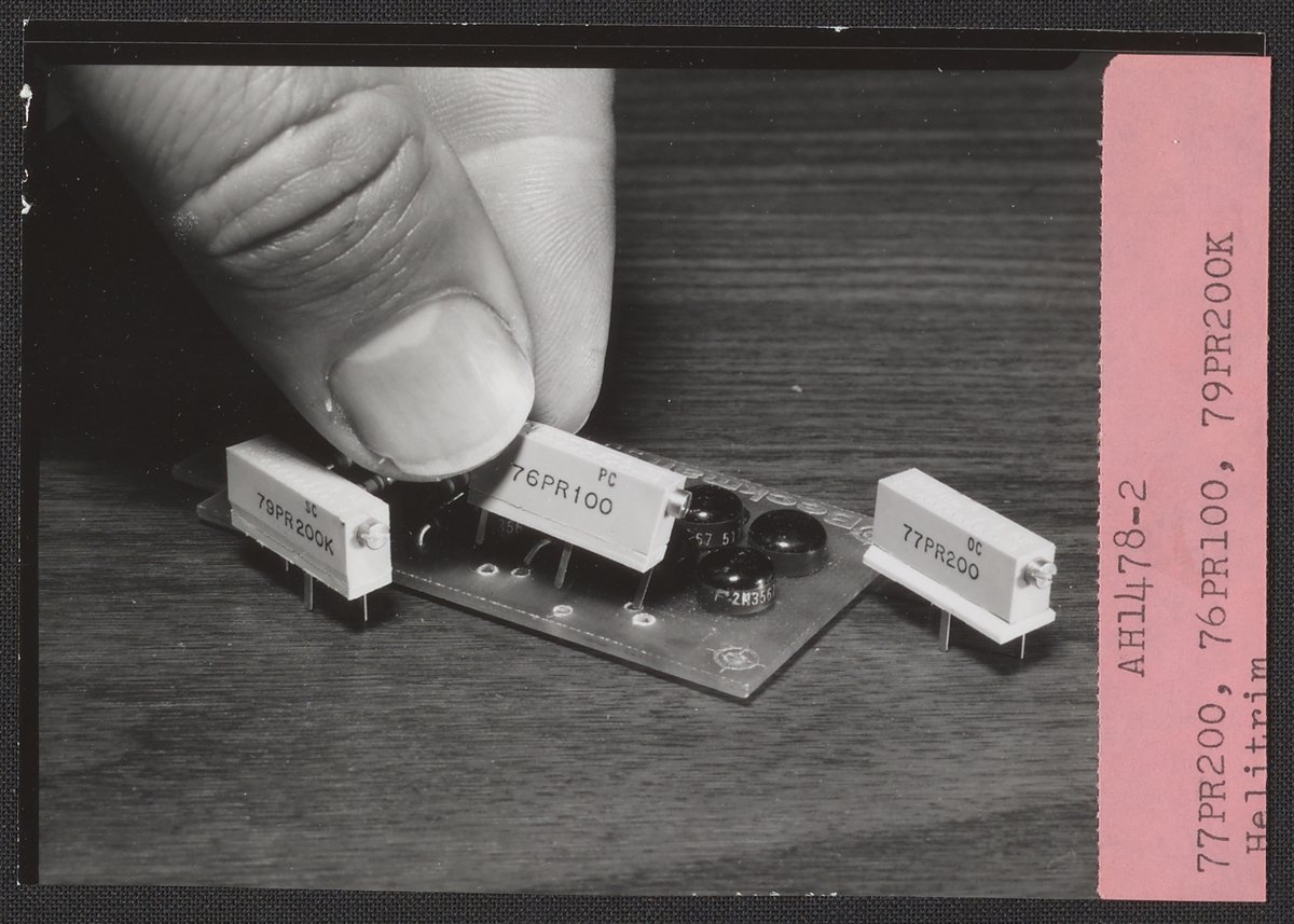 Armstrong & Hess. “Helitrim Models 77PR200, 76PR100, and 79PR200K Trimming Potentiometers,” 1950–1969. Beckman Historical Collection, Box 85. Science History Institute. Philadelphia. https://digital.sciencehistory.org/works/9880vr308.