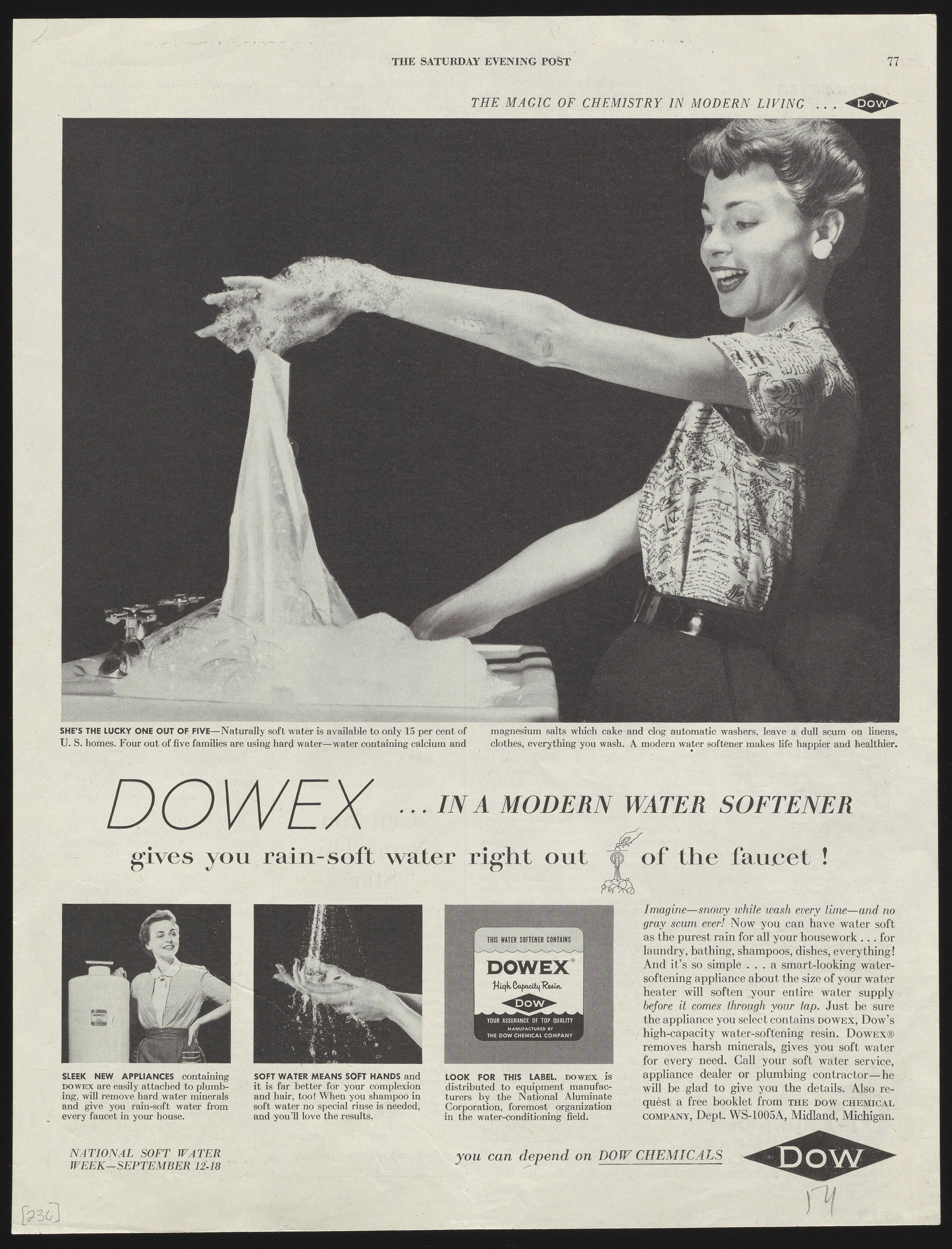 DOWEX...in a Modern Water Softener Gives You Rain-Soft Water Right Out of the Faucet!