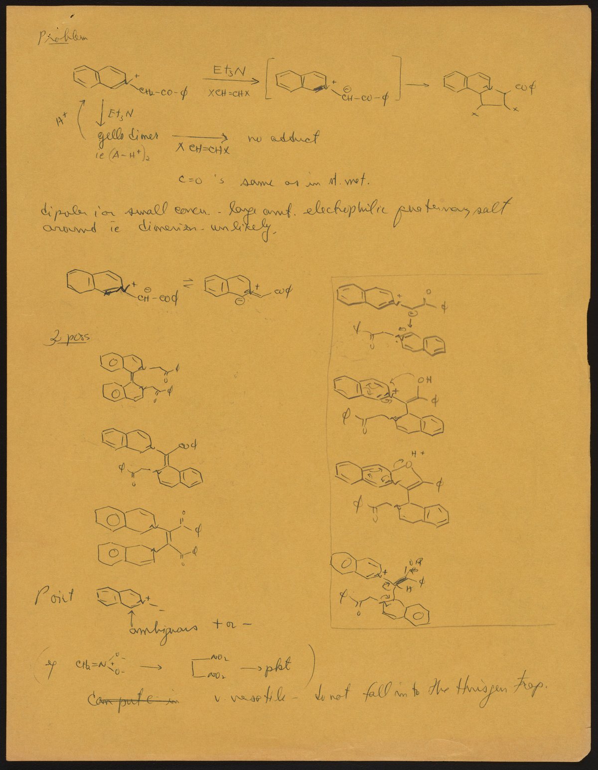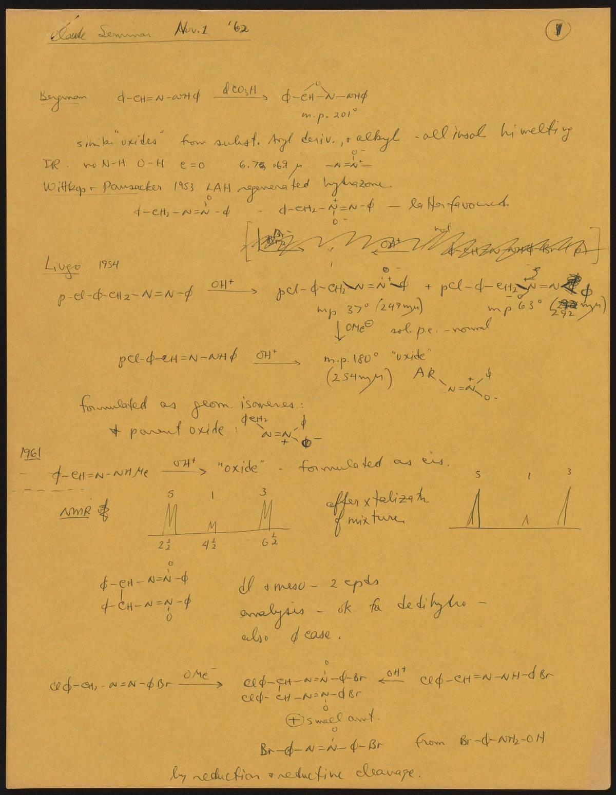 Kohler, Robert E. “R. B. (Robert Burns) Woodward Seminar Entitled ‘Claude Seminar,’” circa 1959–1966. Robert E. Kohler Papers, Folder 2. Science History Institute. Philadelphia. https://digital.sciencehistory.org/works/9c67wn91h.