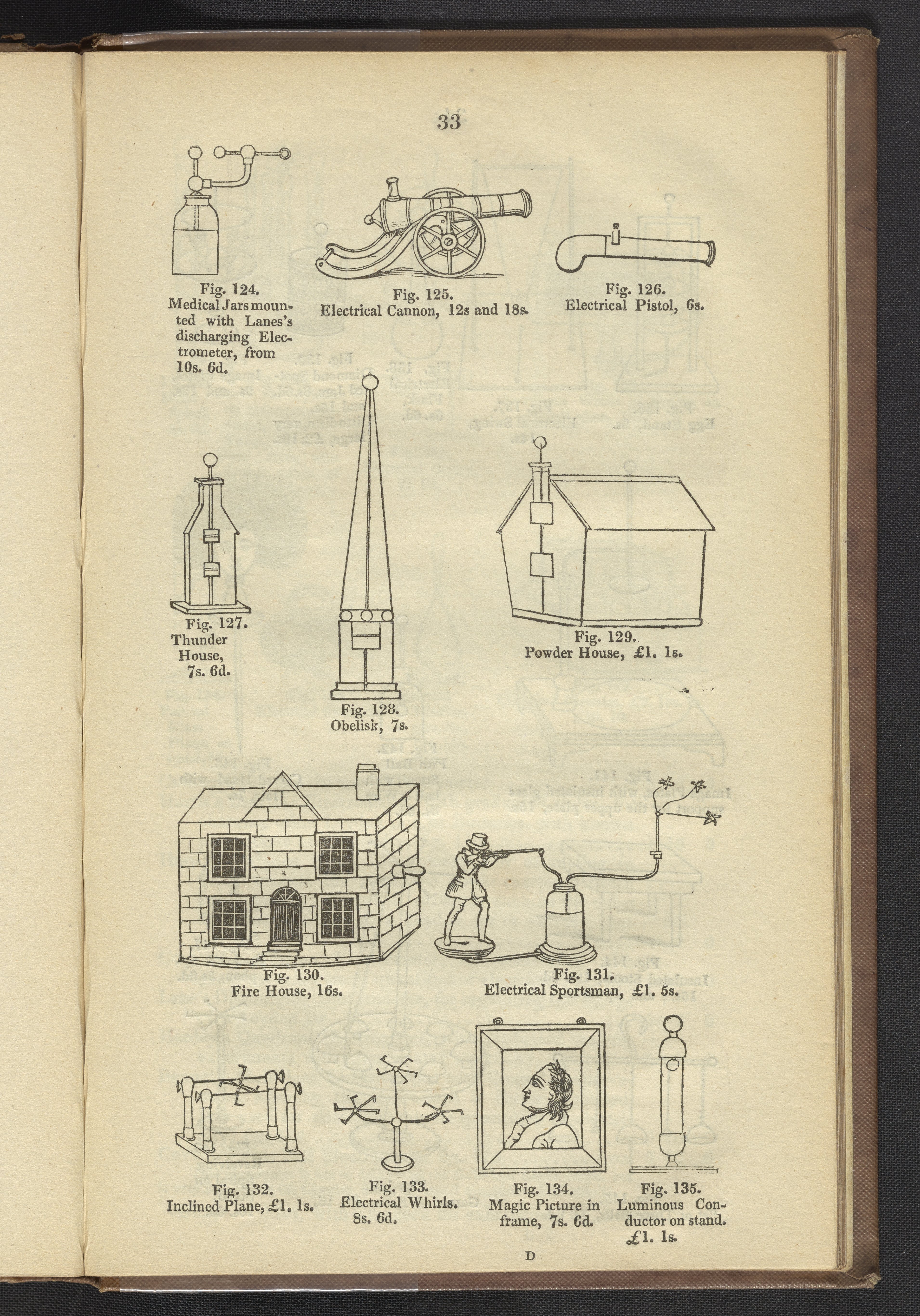 Palmer, Edward. “Figures 124-135. Plate Electrical Machines.” In Palmer's New Catalogue, with Three Hundred Engravings of Apparatus, Illustrative of Chemistry, Pneumatics, Frictional and Voltaic Electricity, Electro Magnetism, Optics, &c. London, England: William Gilbert, 1840. https://digital.sciencehistory.org/works/9chrkef.