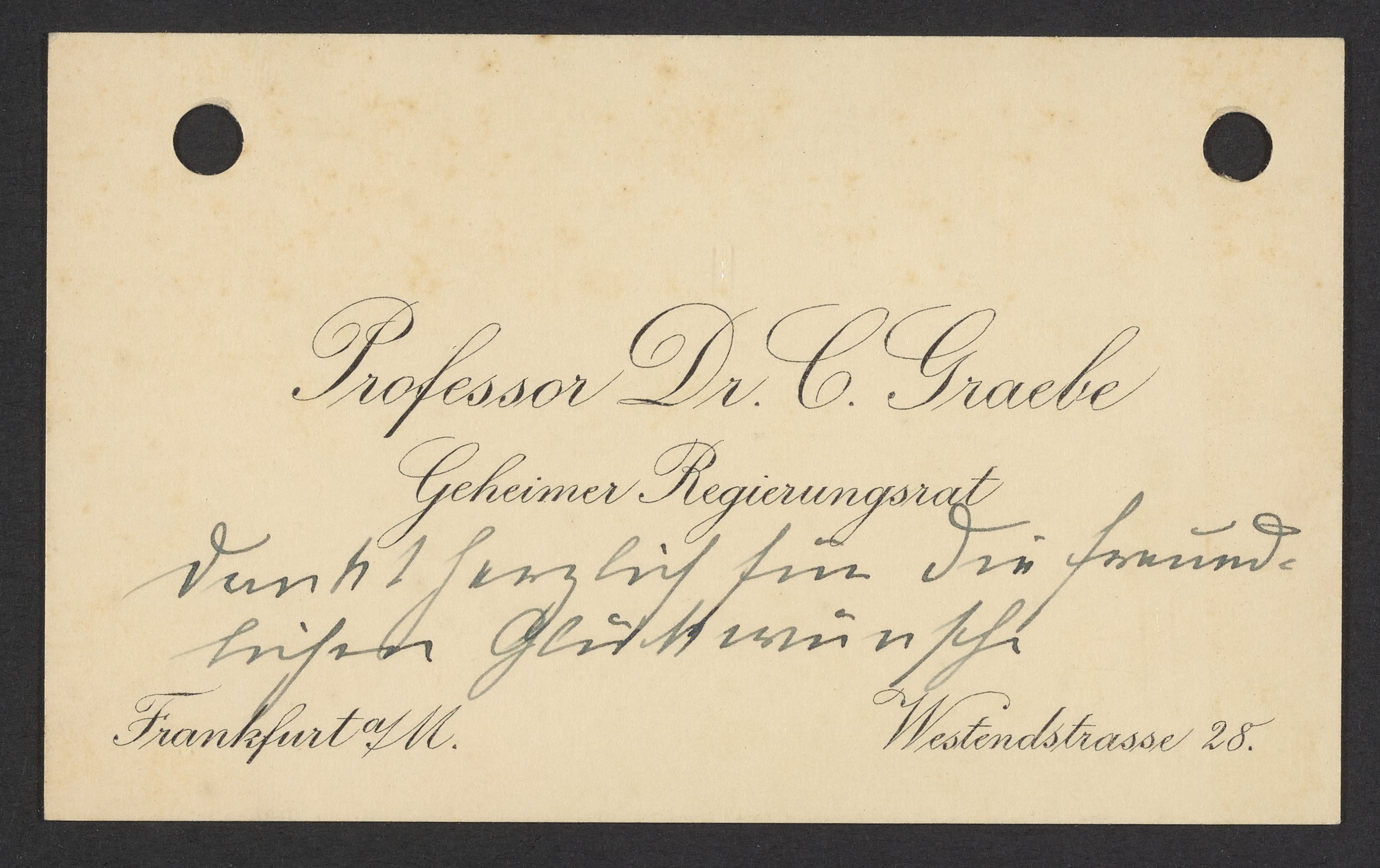 Calling card belonging to Carl Gräbe (1841-1927) a German chemist and professor.