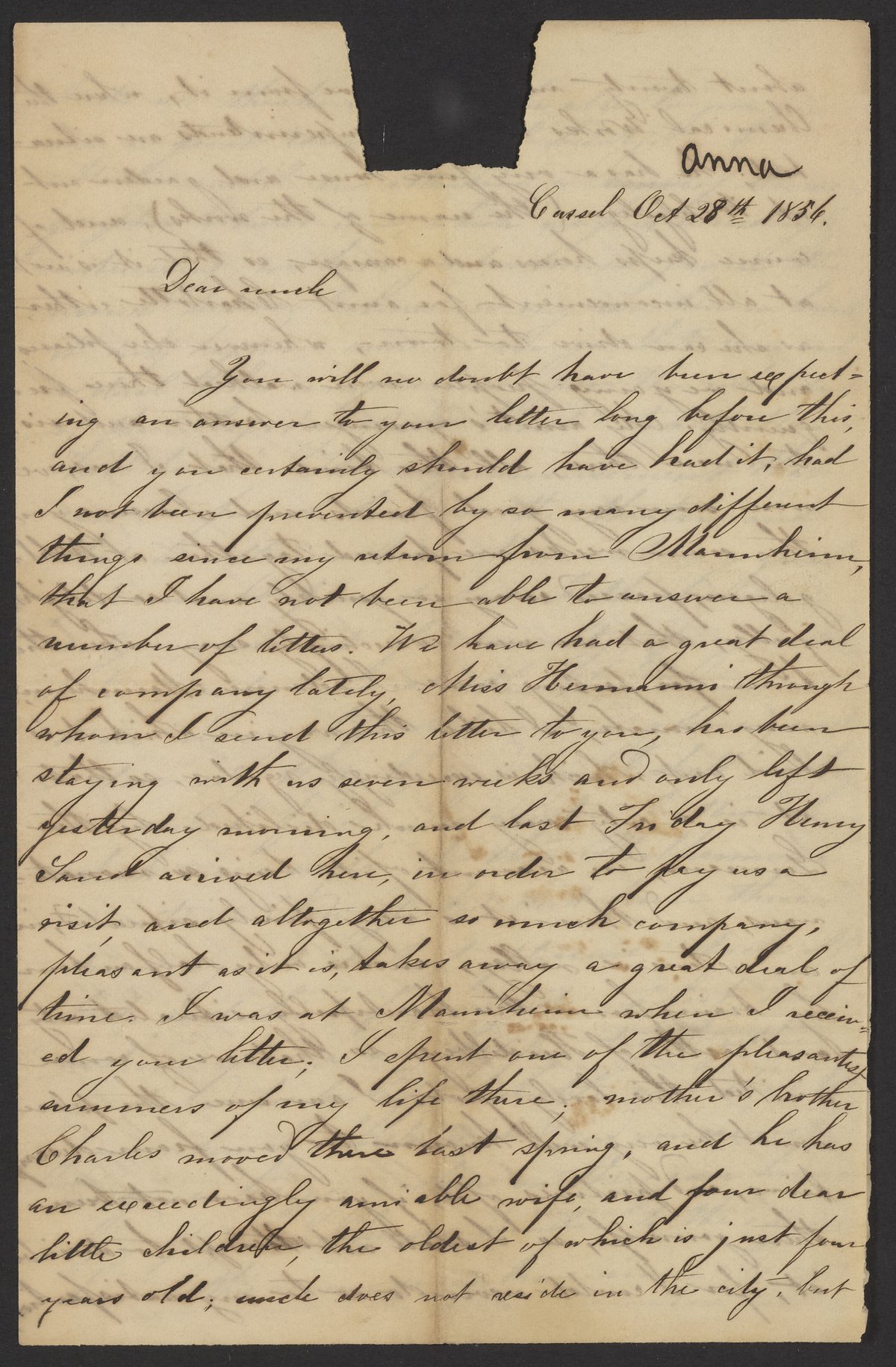 Anna, neice of James Curtis Booth (1810-1888) writes with her impressions of Germany.