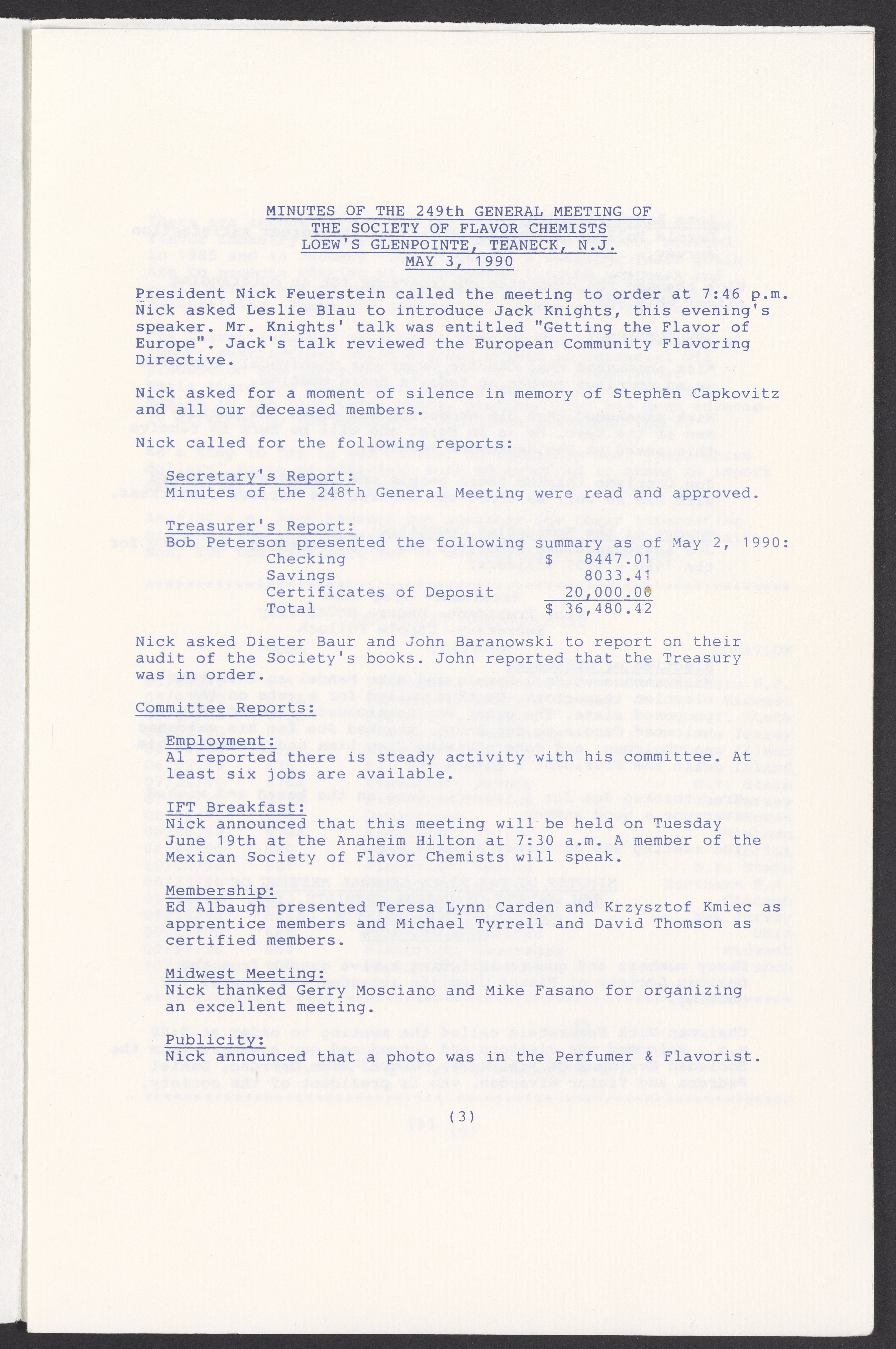 Society of Flavor Chemists. “Society of Flavor Chemists Newsletter, October 1990,” October 25, 1990. Society of Flavor Chemists Newsletters , Box 1, Folder 1. Science History Institute. Philadelphia. https://digital.sciencehistory.org/works/9id7v52.