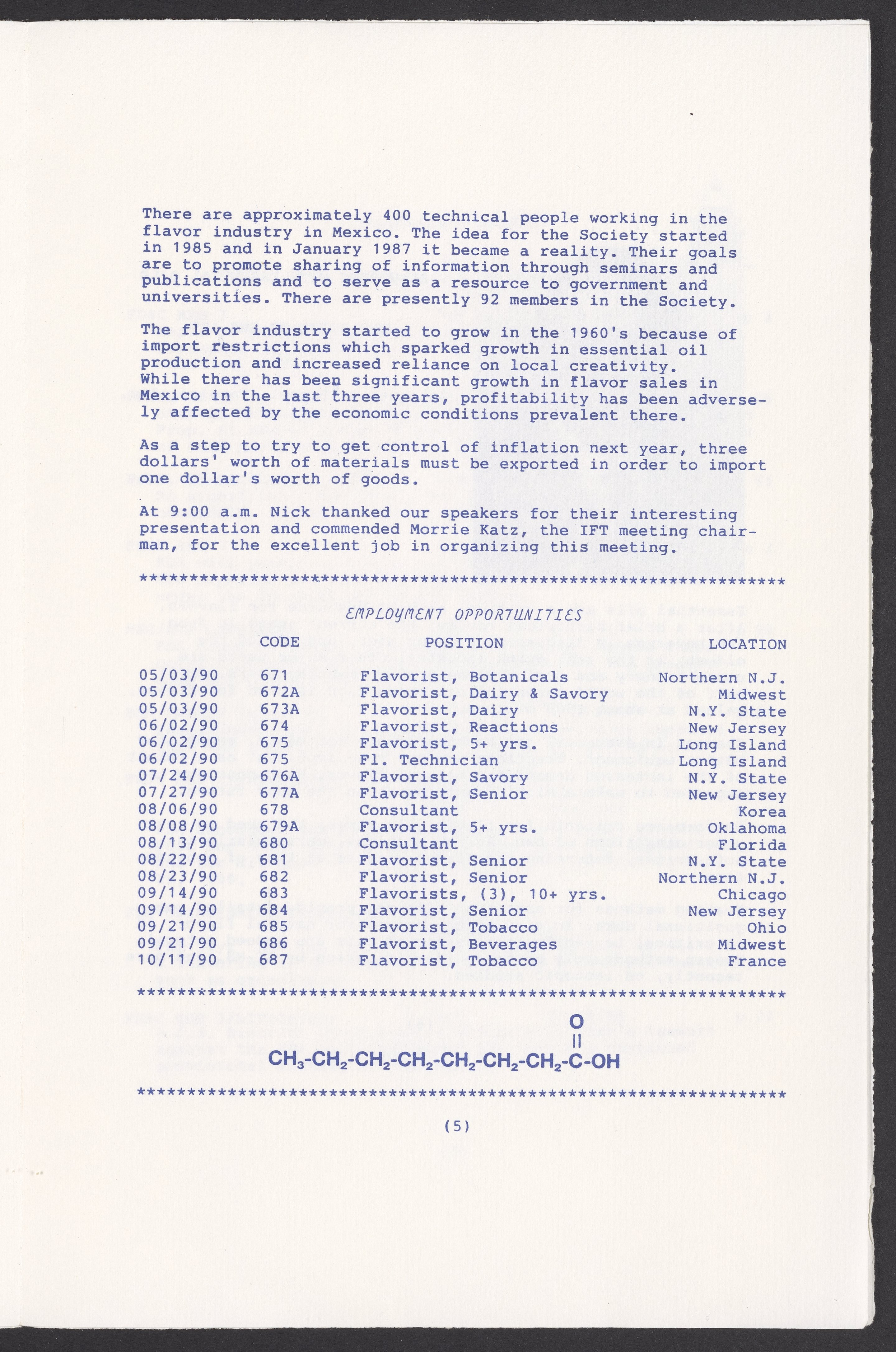 Society of Flavor Chemists newsletter, October 1990