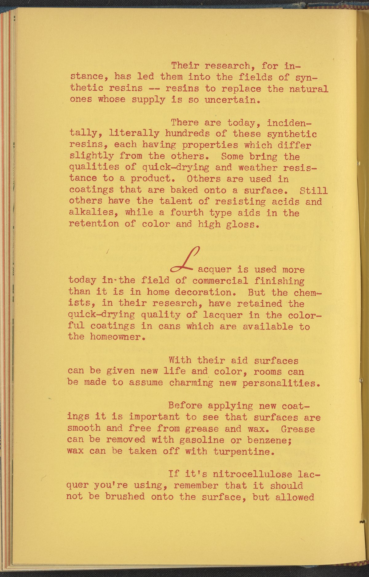 National Paint, Varnish. “Lacquer's Like That.” Pamphlets Corresponding to Radio Shows Produced by the National Paint, Varnish and Lacquer Association. Washington (D.C.), 1940–1949. TP935 .K46. Science History Institute. Philadelphia. https://digital.sciencehistory.org/works/9j45r7h.