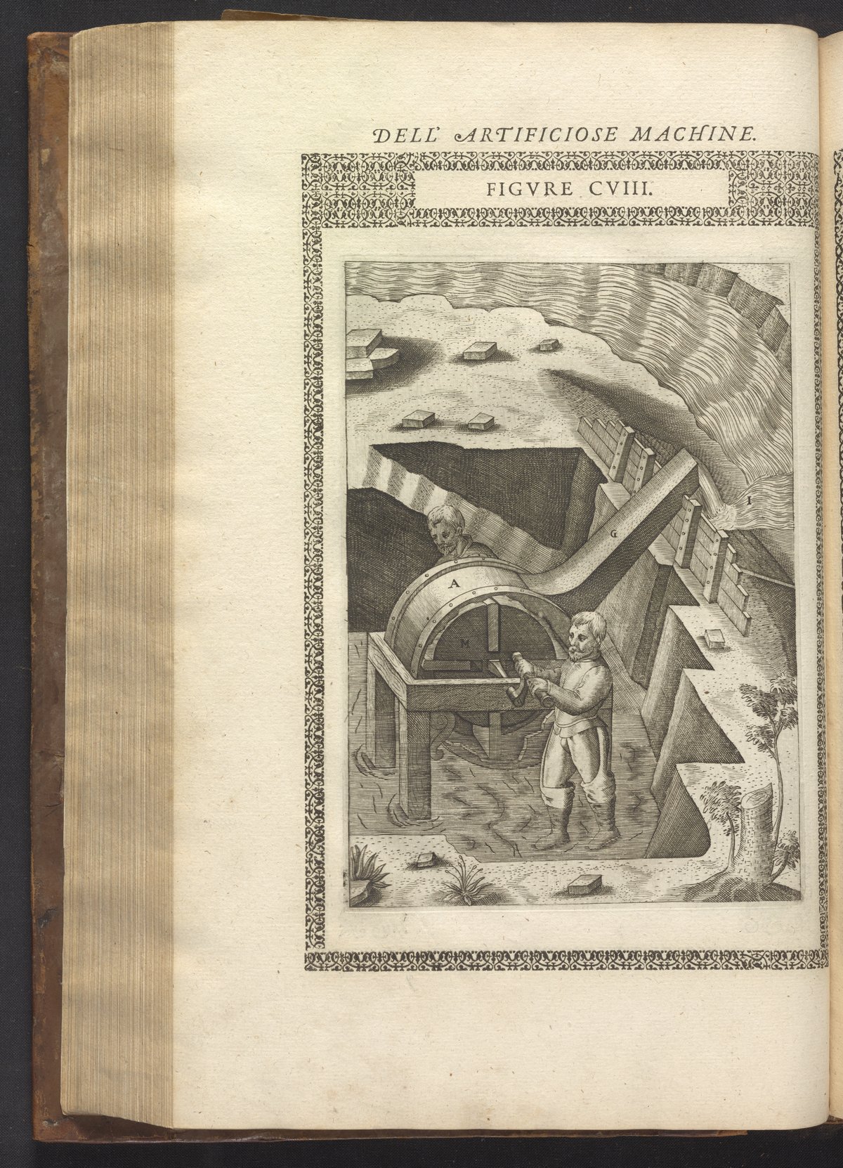 Ramelli, Agostino. “Plate 108: Device for Two Men to Drain Water from a Marsh or Foundation.” In Le Diverse Et Artificiose Machine Del Capitano Agostino Ramelli. Paris, France, 1588. https://digital.sciencehistory.org/works/9k41zd698.