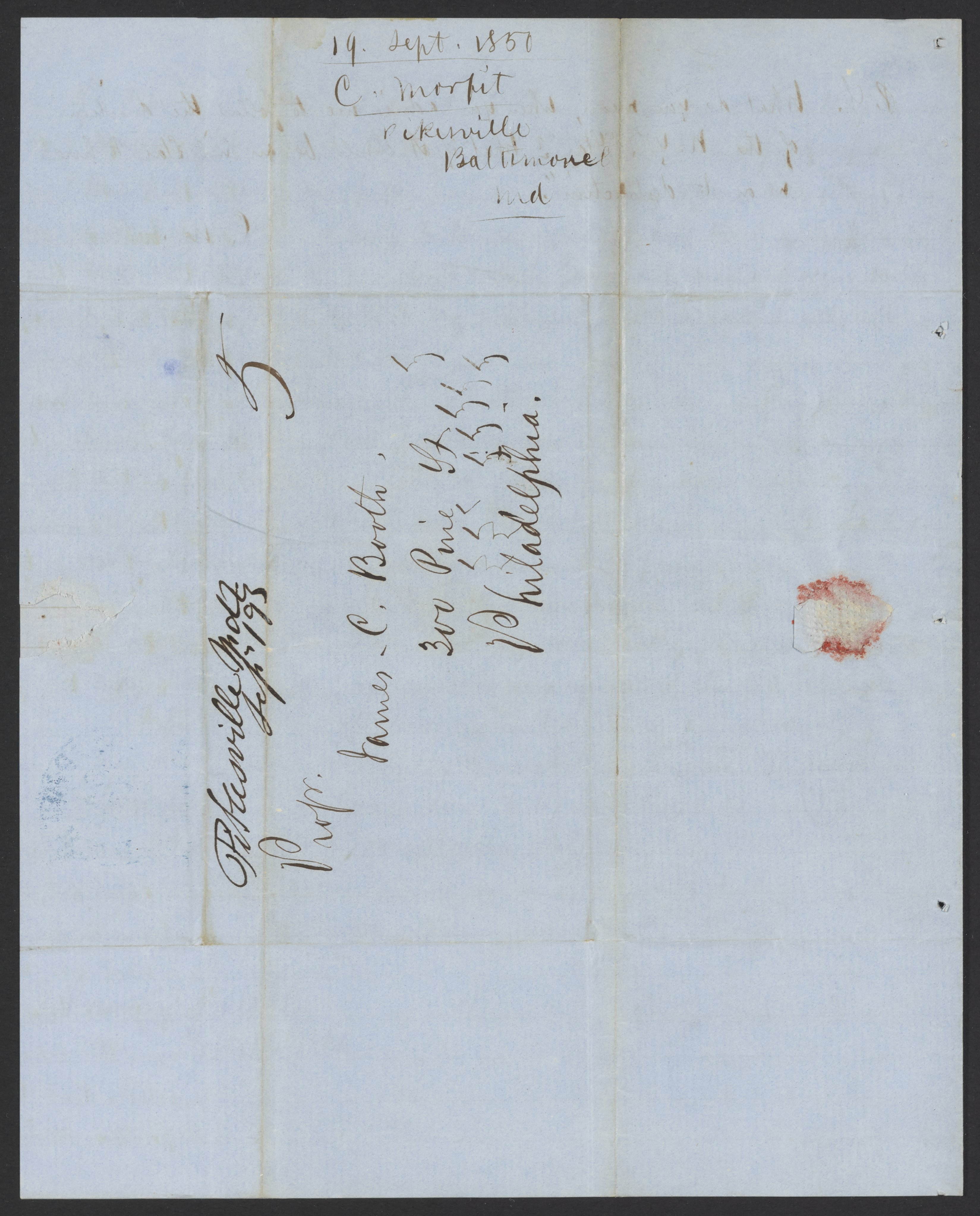 Morfit, Campbell. “Letter from Campbell Morfit to James Curtis Booth, September 19, 1850,” September 29, 1850. Papers of James Curtis Booth, Box 1, Folder 10. Science History Institute. Philadelphia. https://digital.sciencehistory.org/works/9m8cxf5.