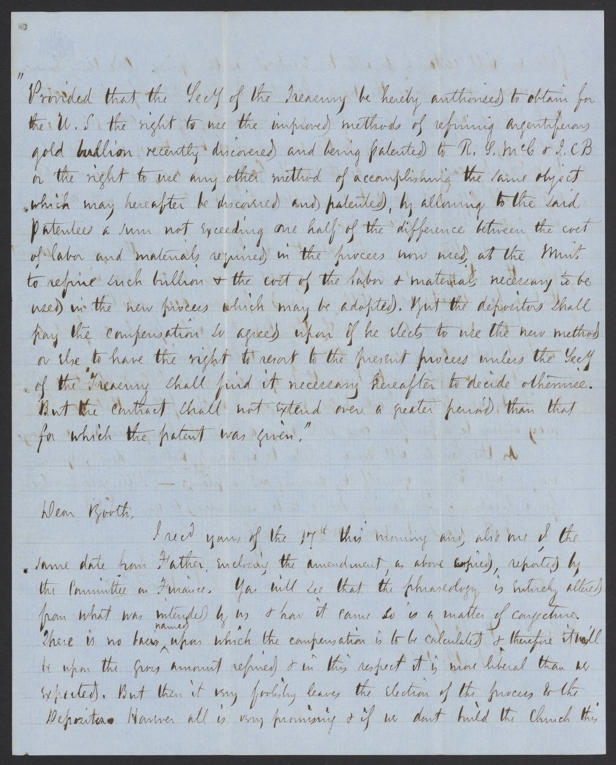 Letter from Campbell Morfit to James Curtis Booth, September 19, 1850