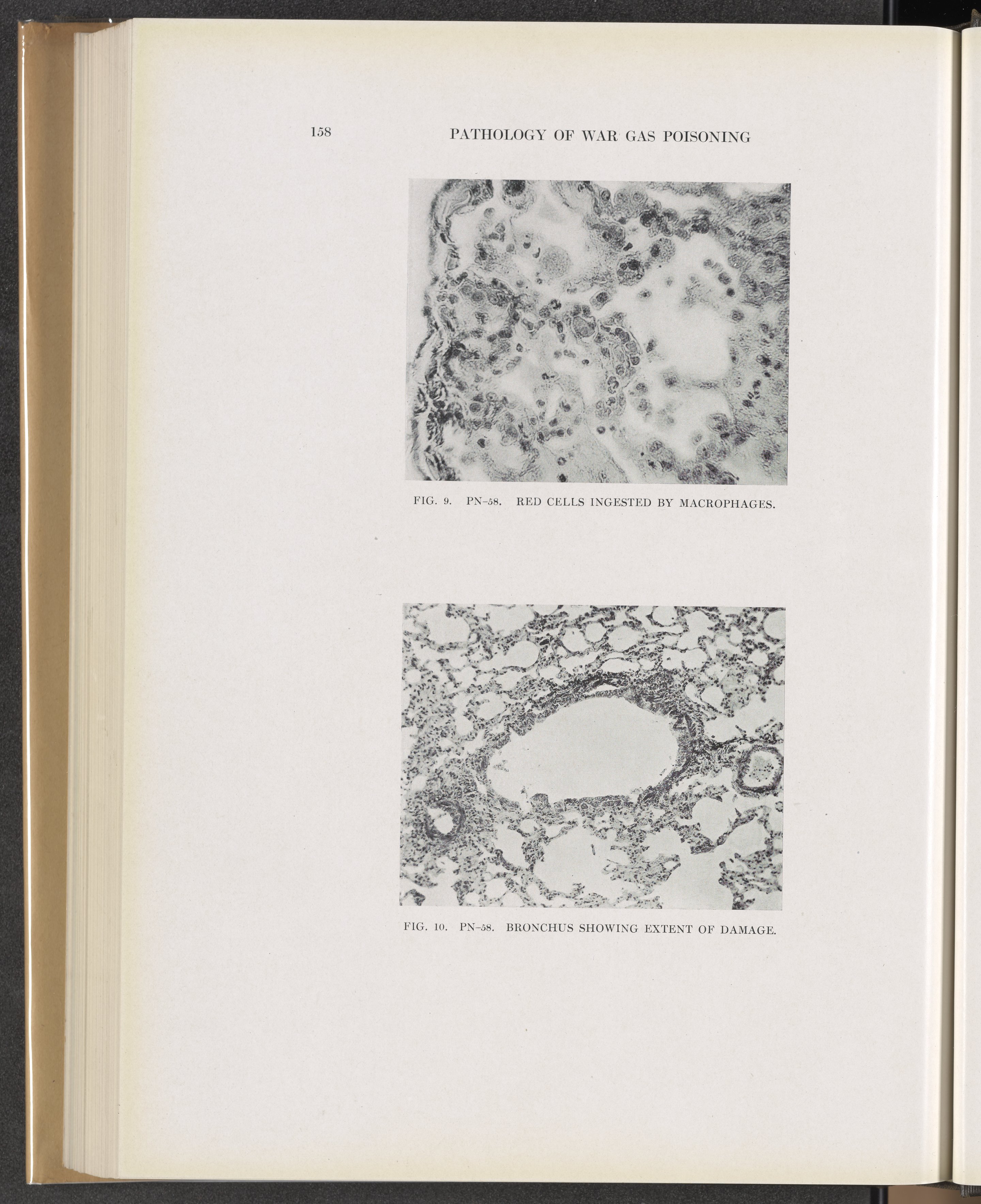 Winternitz, M. C. (Milton C.). “Fig. 9: Red Cells Ingested by Macrophages. Fig. 10: Bronchus Showing Extent of Damage.” Collected Studies on the Pathology of War Gas Poisoning. New Haven, Connecticut: Yale University Press, 1920. https://digital.sciencehistory.org/works/9p290959p.