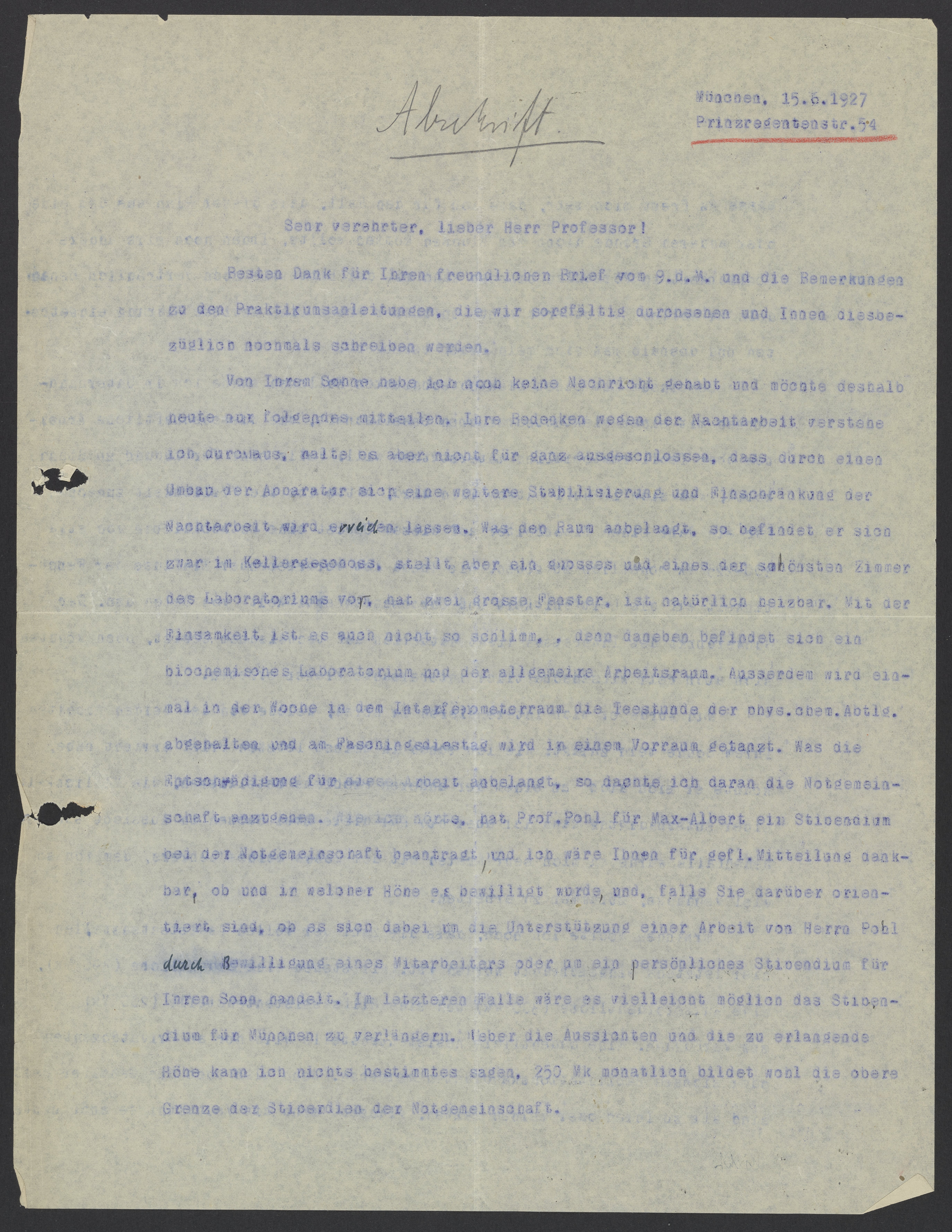 Letter from Kasimir Fajans to Georg Bredig, June 15, 1927