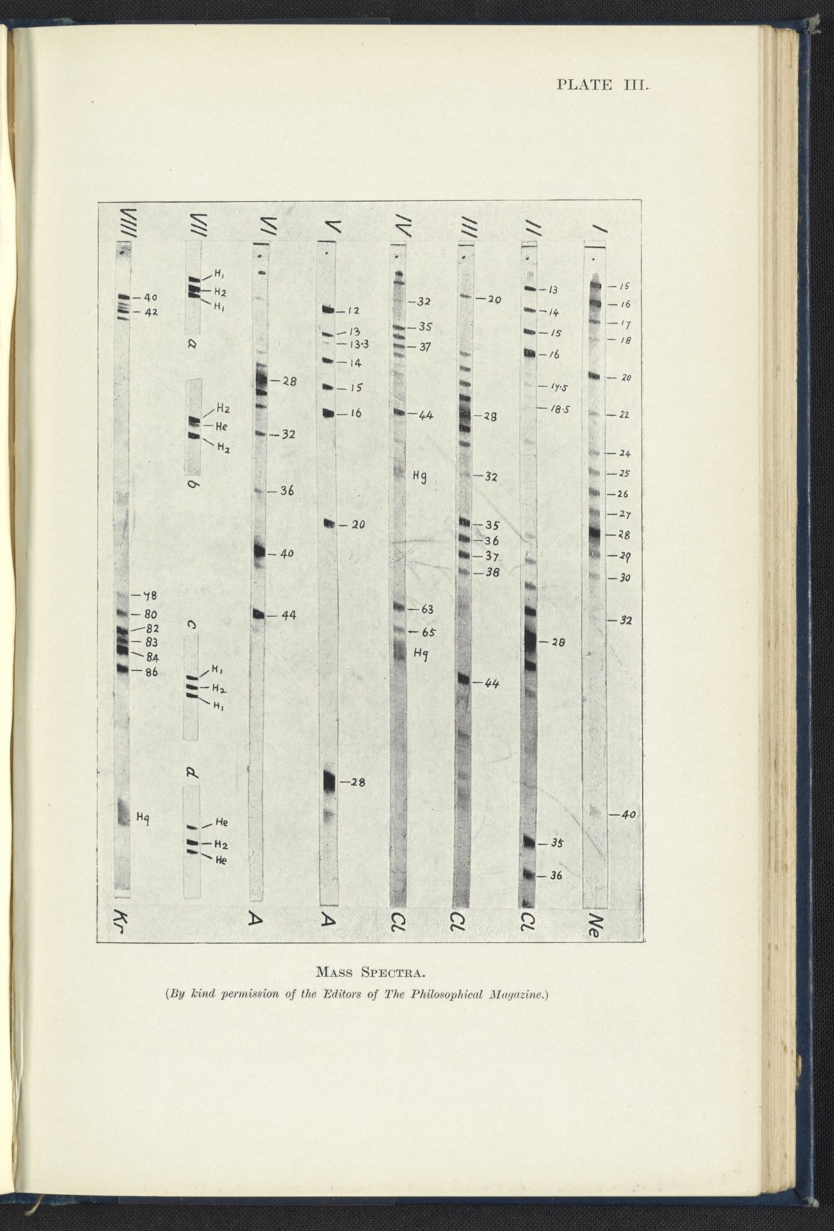 Mass spectra analysis of neon, chlorine, argon, and krypton
