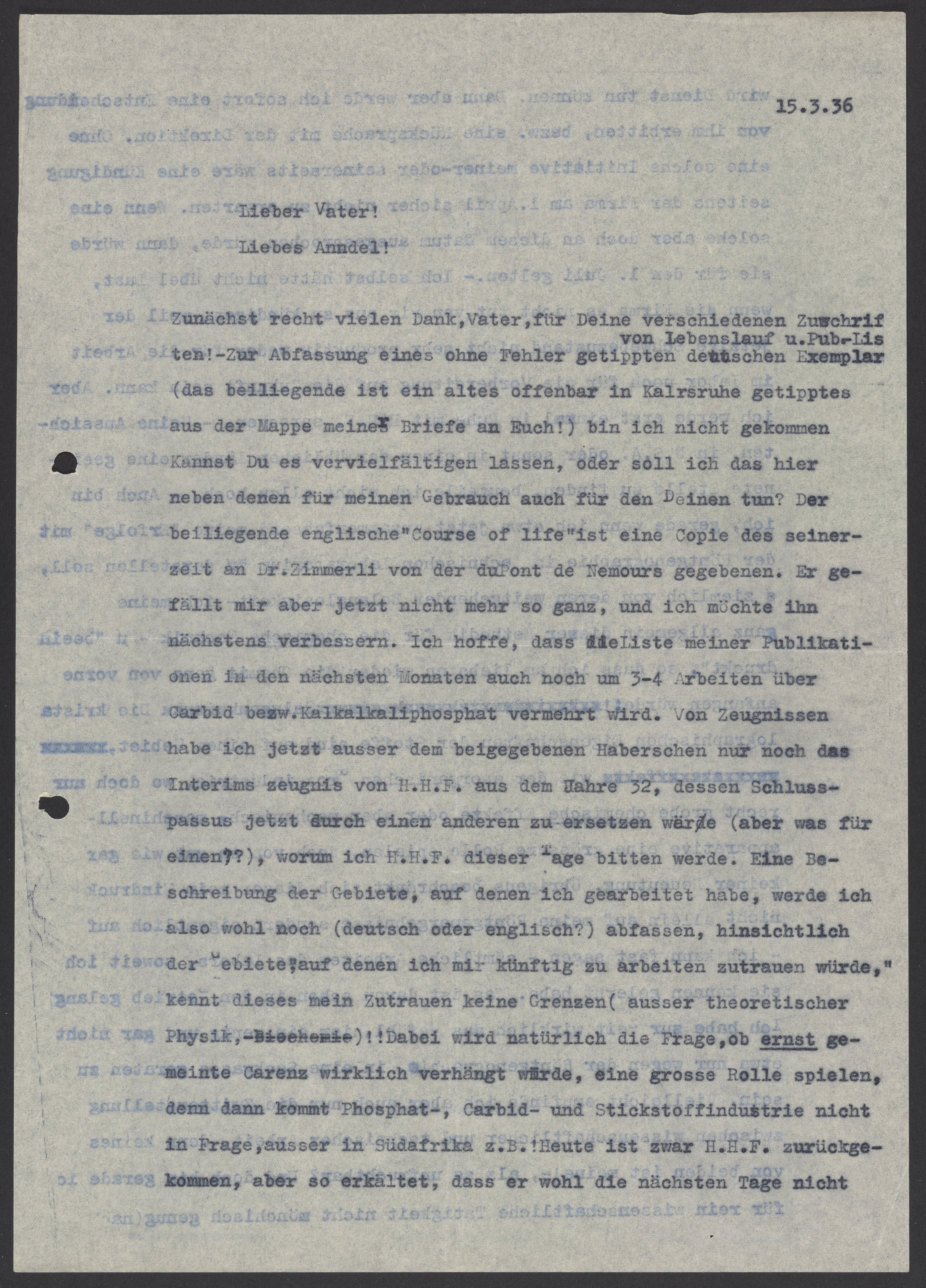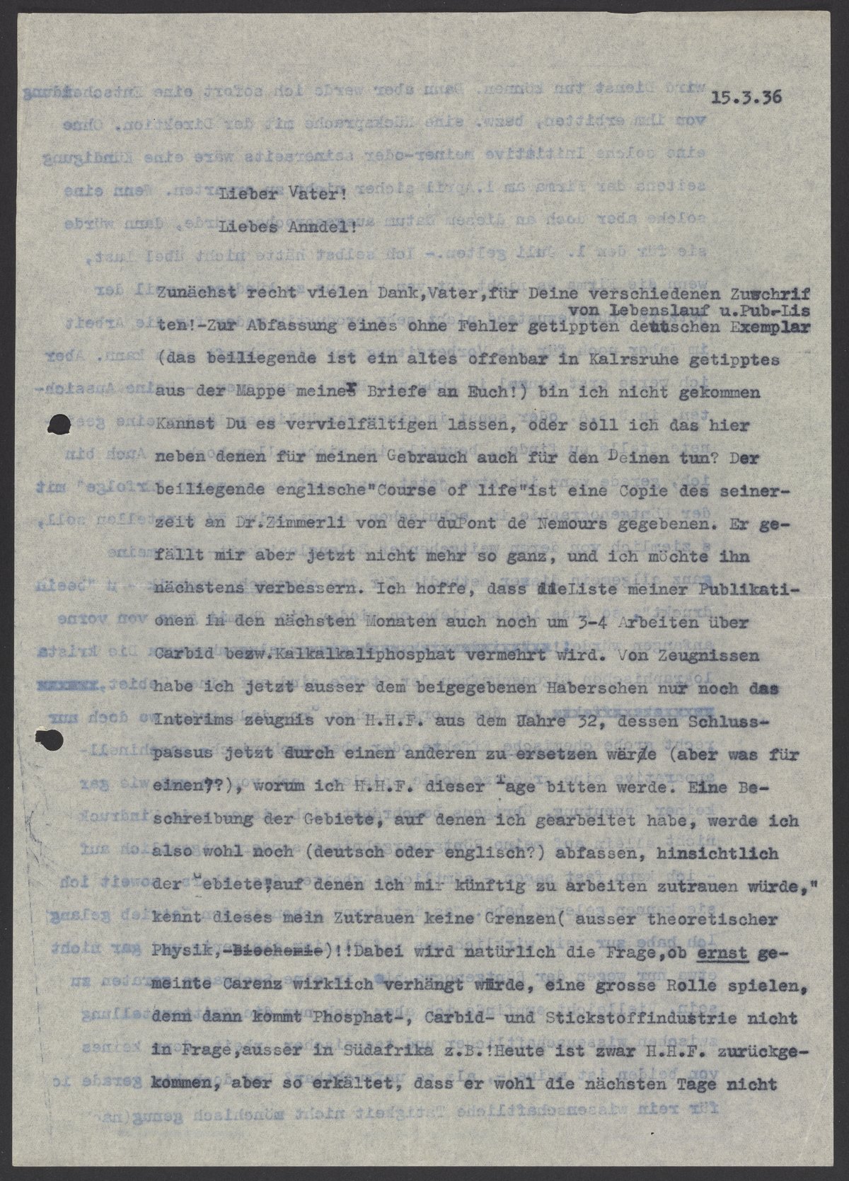 Letter from Max Bredig to Georg Bredig and Marianne Homburger, March 15, 1936