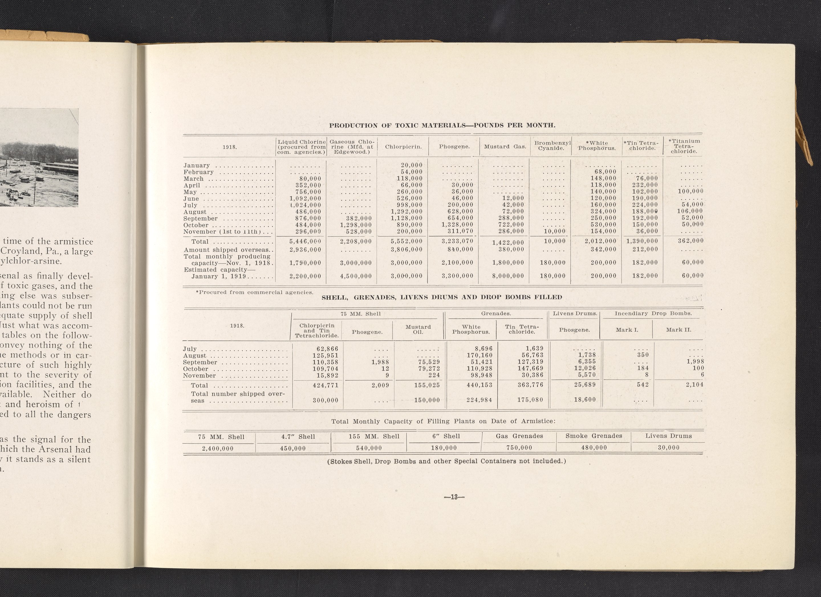 Production of Toxic Materials—Pounds per Month; Shell, Grenades, Liven Drums and Drop Bombs Filled