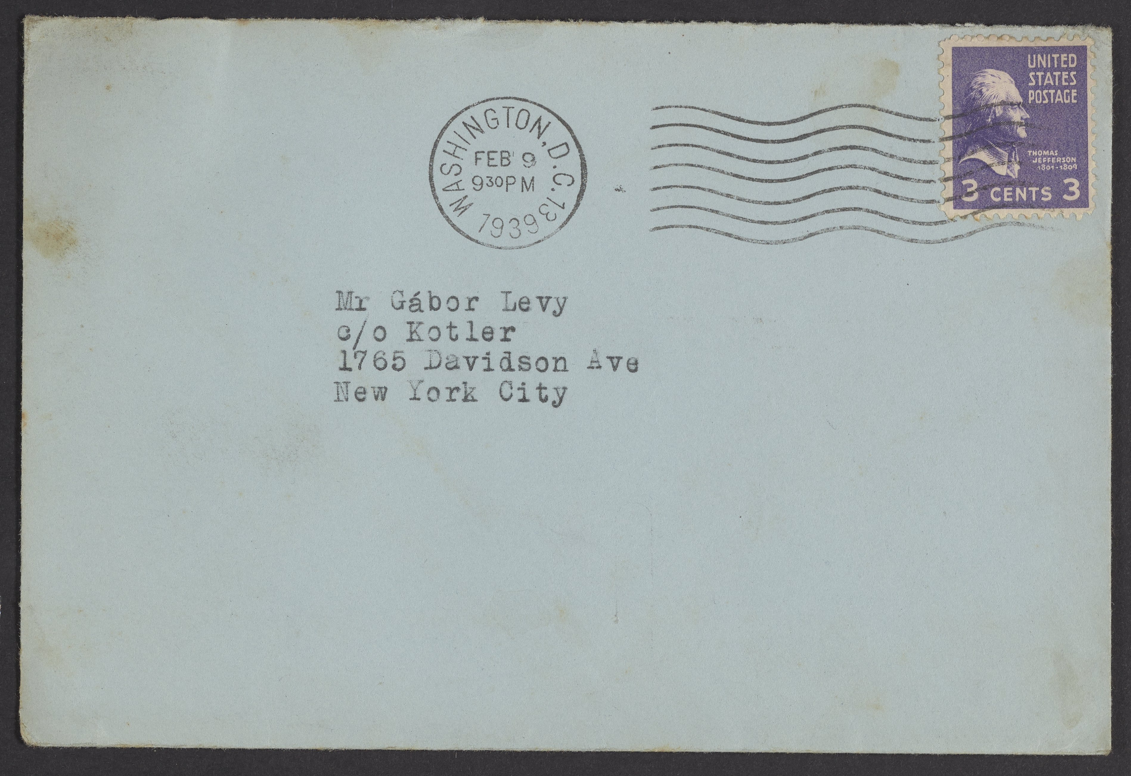 Letter to Gabor B. Levy from Mici Teller, February 9, 1939