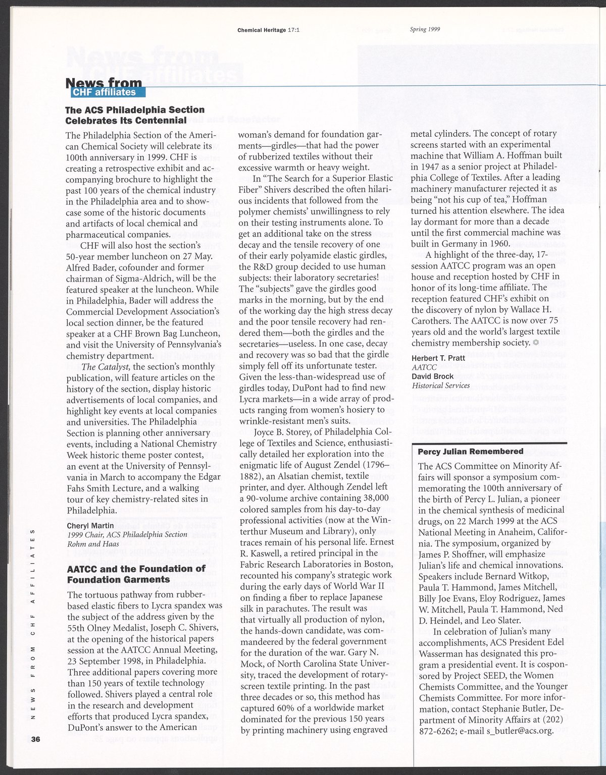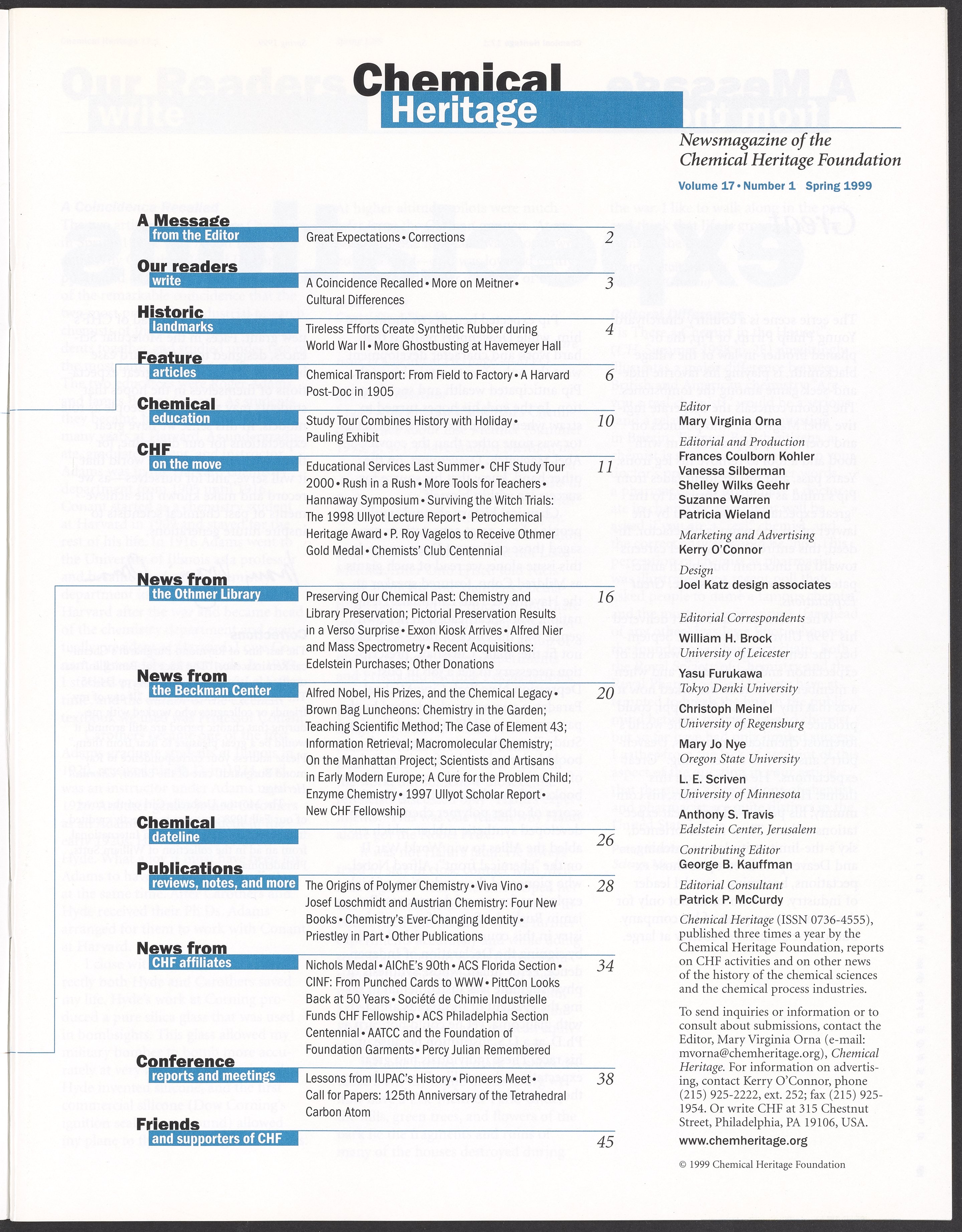 Chemical Heritage, Volume 17 Number 1