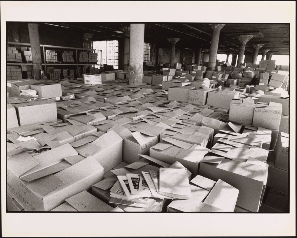 Benson, Neil. “Institute for Scientific Information Warehouse,” circa 1981. Eugene Garfield Papers, Box 124. Science History Institute. Philadelphia. https://digital.sciencehistory.org/works/a4of1qs.