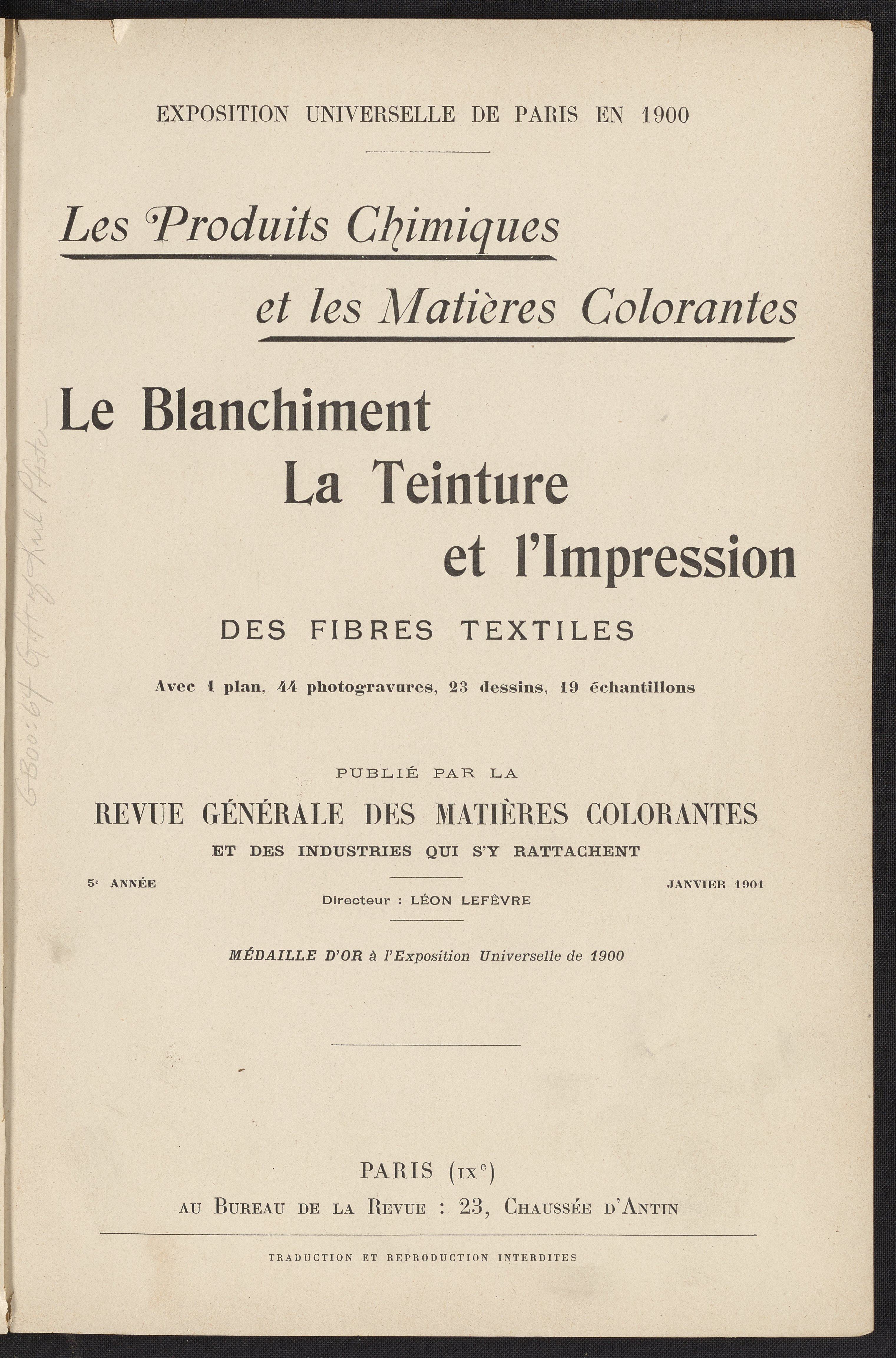Les Produits Chimiques et les Matières Colorantes: Le Blanchiment, la Teinture, et l'Impression des Fibres Textiles