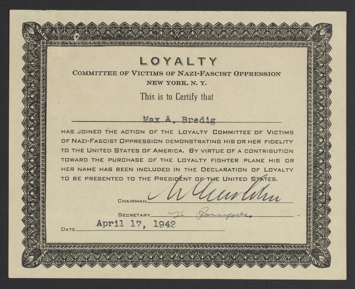 Membership certificate for the Loyalty Committee of Victims of Nazi and Fascist Oppression
