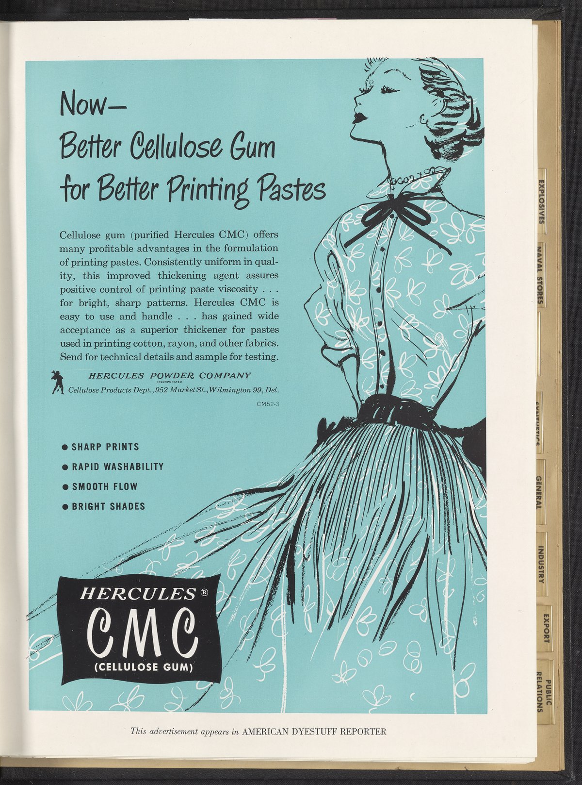Hercules Incorporated. “Now--Better Cellulose Gum for Better Printing Pastes.” 1952 Hercules Advertisements, 1952. Records of Hercules Incorporated, Volume 1952. Science History Institute. Philadelphia. https://digital.sciencehistory.org/works/a91kur0.