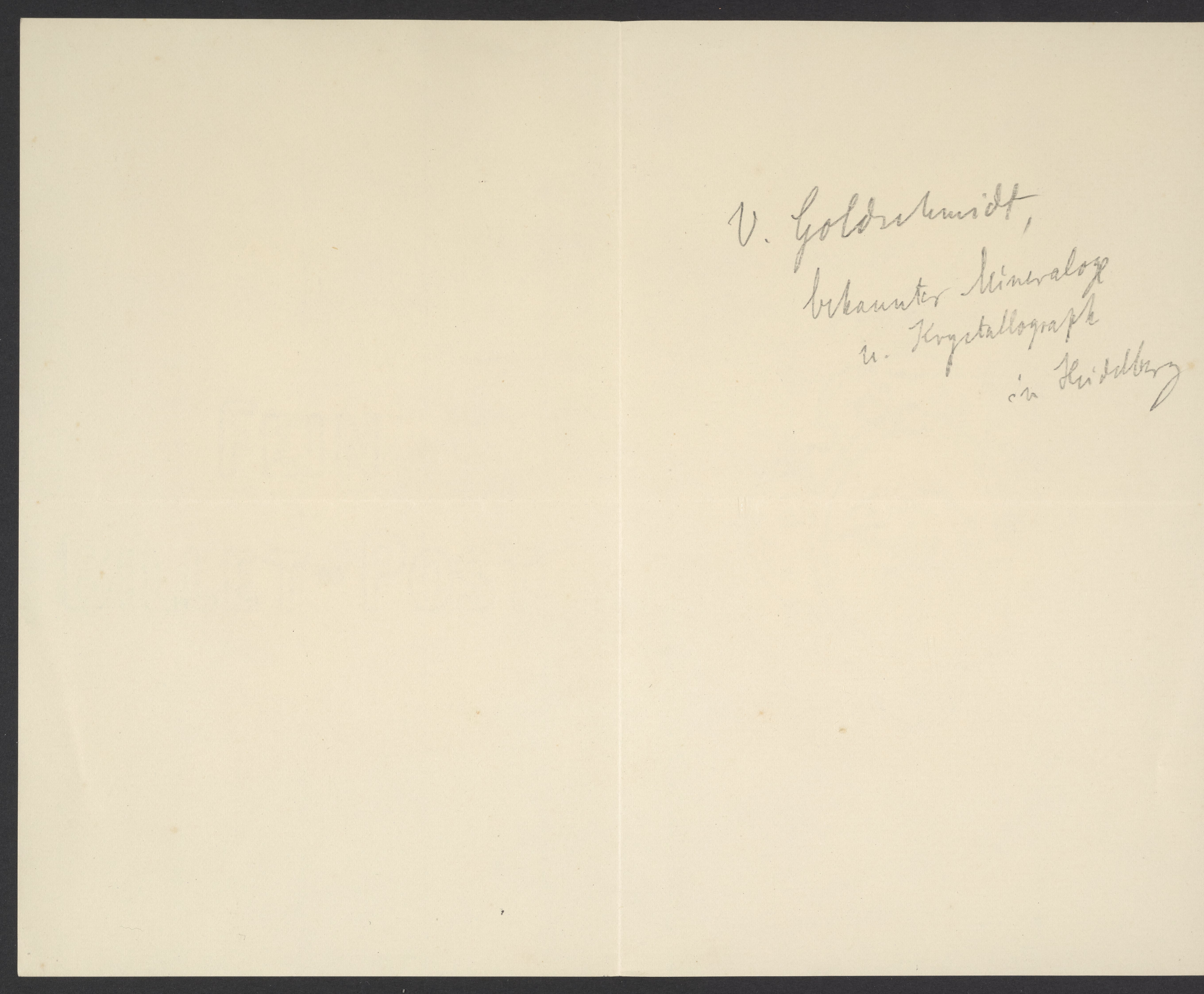 Bredig’s hand: V. Goldschmidt, bekannter Mineraloge u. Kristallograph in Heidelberg