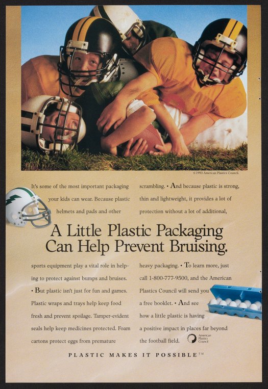 American Plastics Council. “Plastic Makes It Possible Advertisement, 1993,” 1993. Science History Institute. Philadelphia. https://digital.sciencehistory.org/works/addusgd.