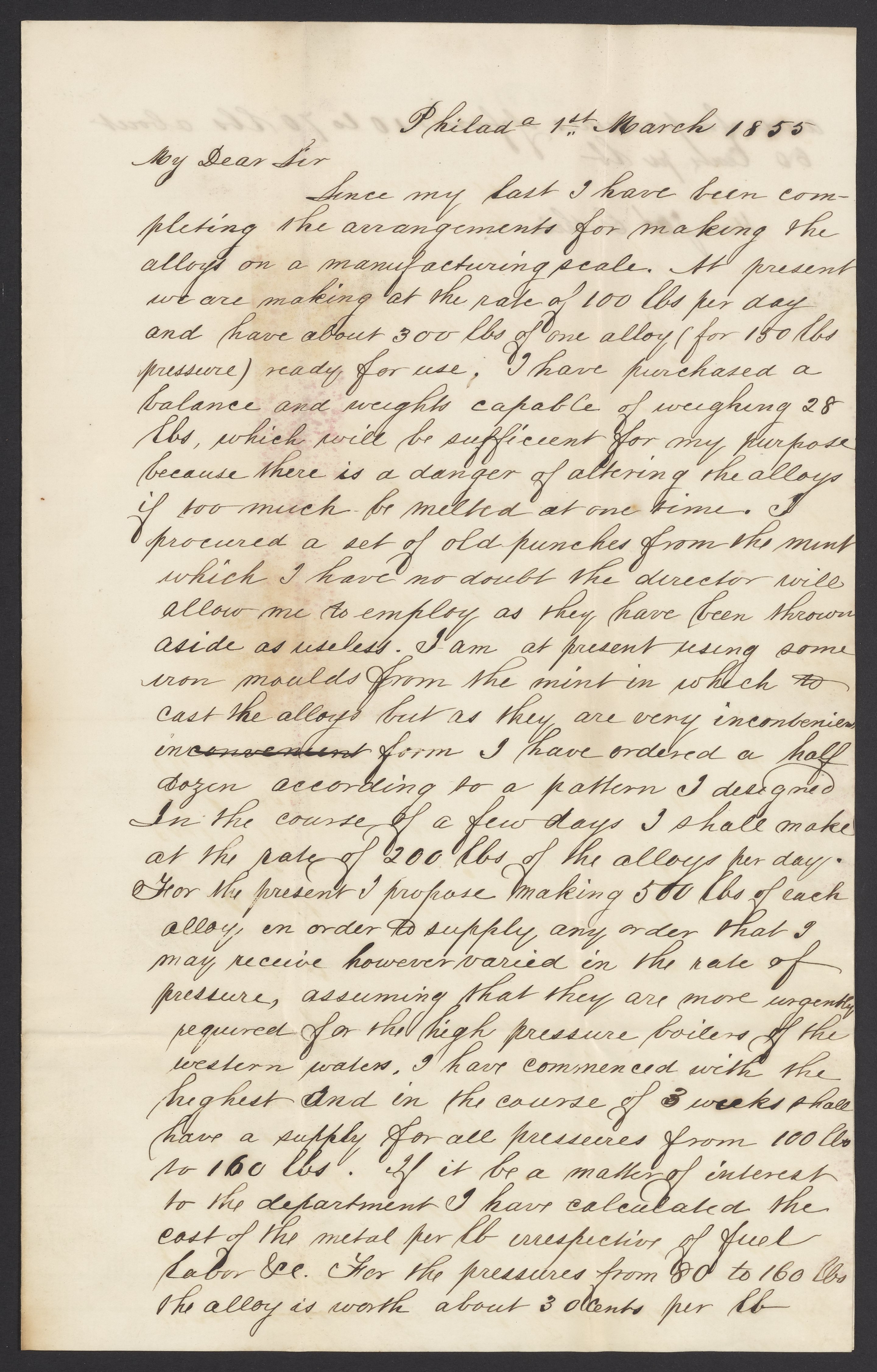 Letter from James Curtis Booth to James B. Guthrie, March 1, 1855