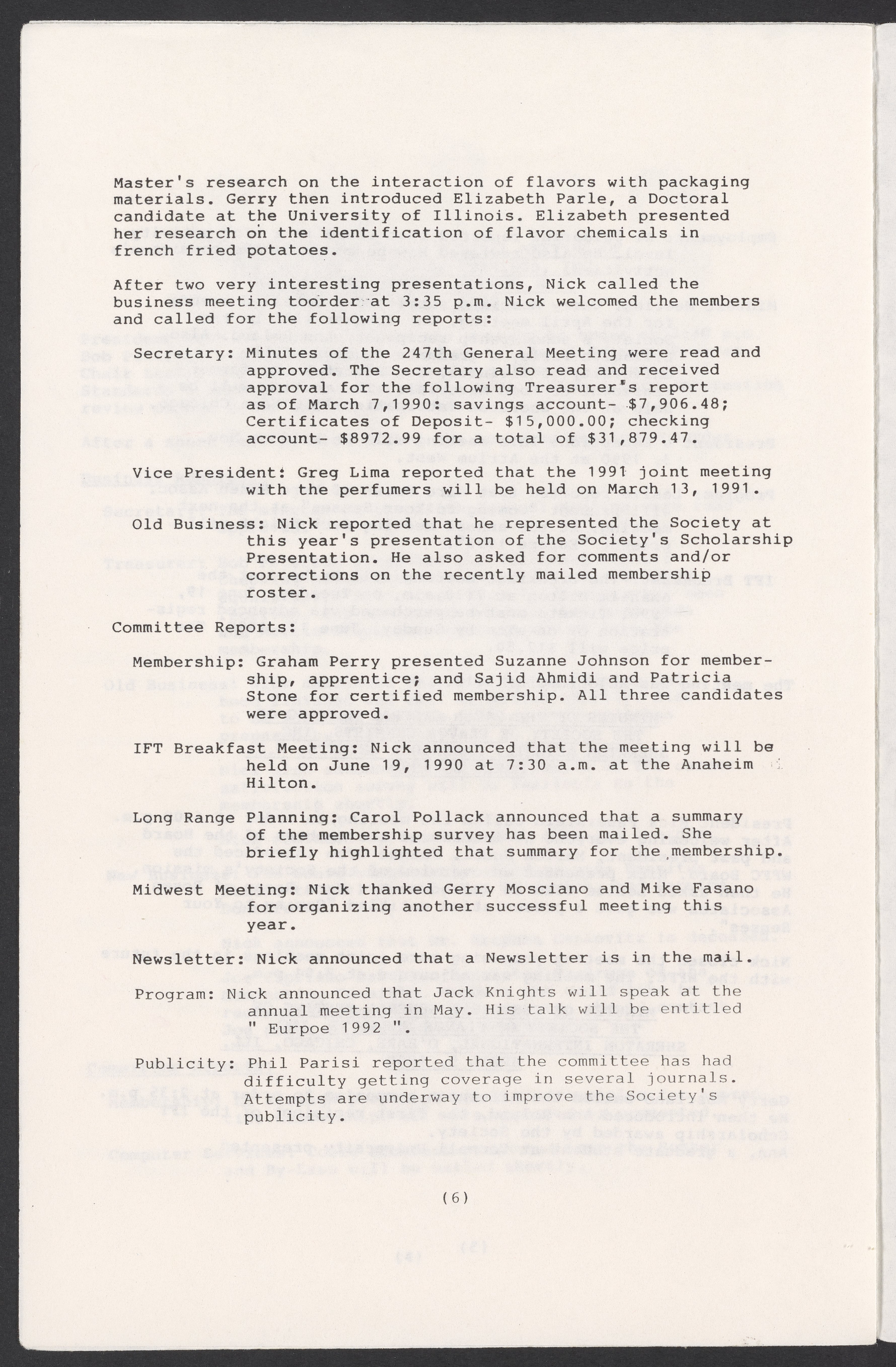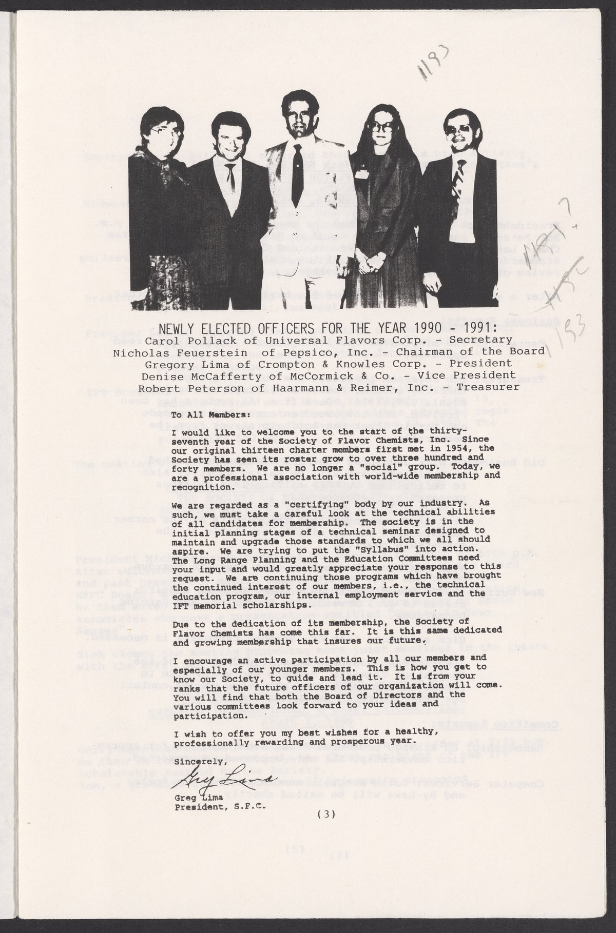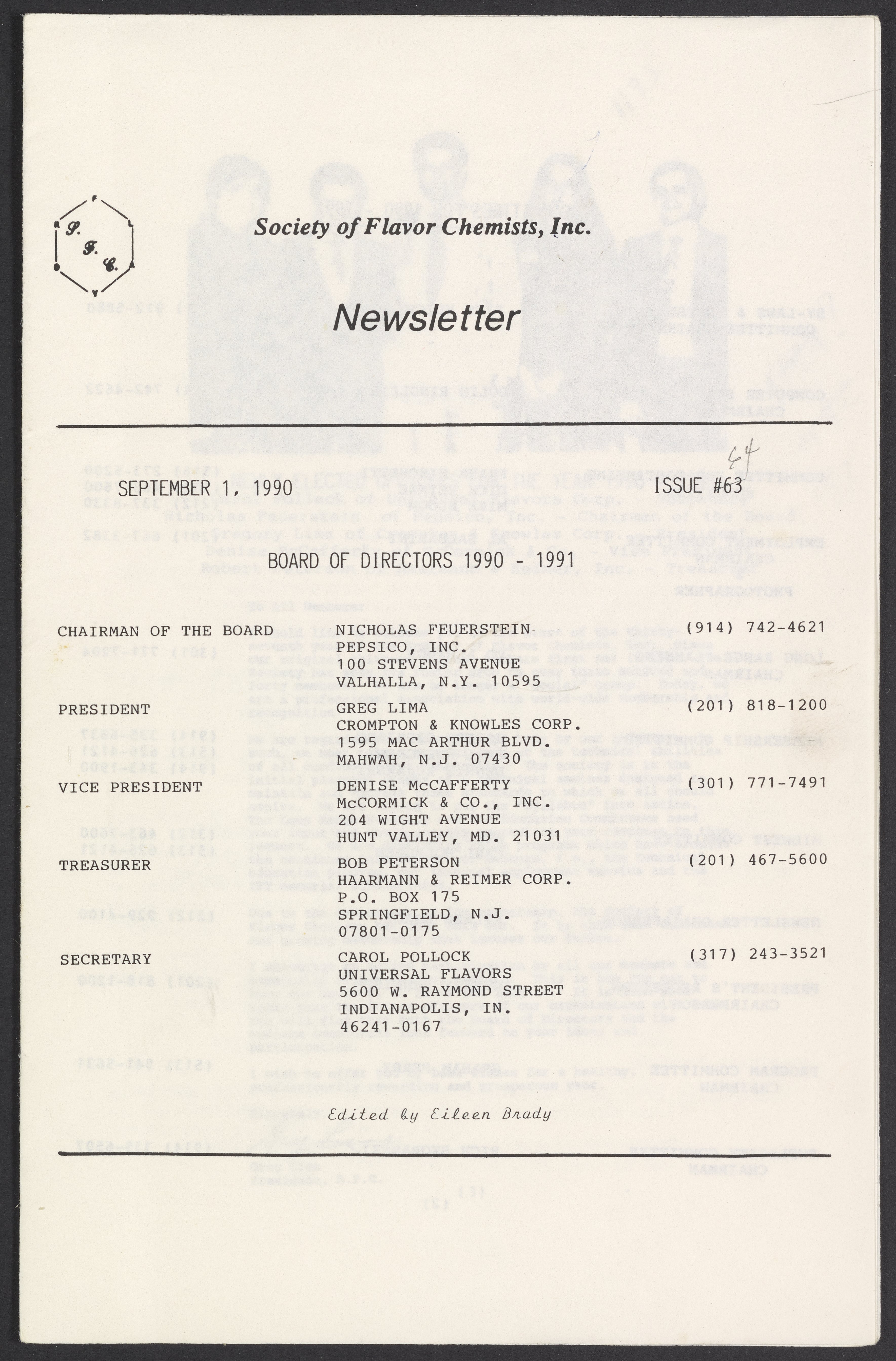 Society of Flavor Chemists. “Society of Flavor Chemists Newsletter, September 1990,” September 1, 1990. Society of Flavor Chemists Newsletters , Box 1, Folder 1. Science History Institute. Philadelphia. https://digital.sciencehistory.org/works/akm4re4.