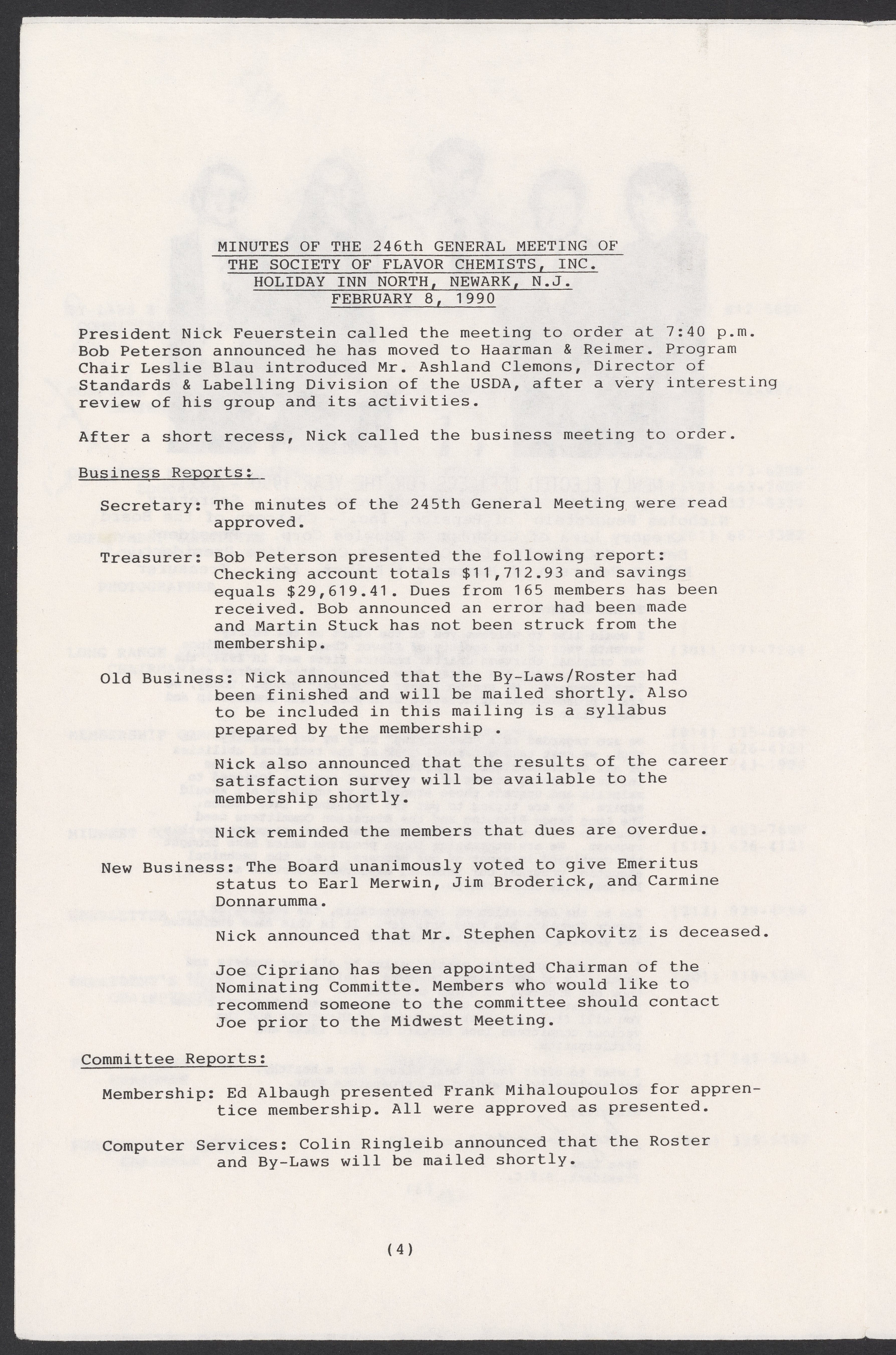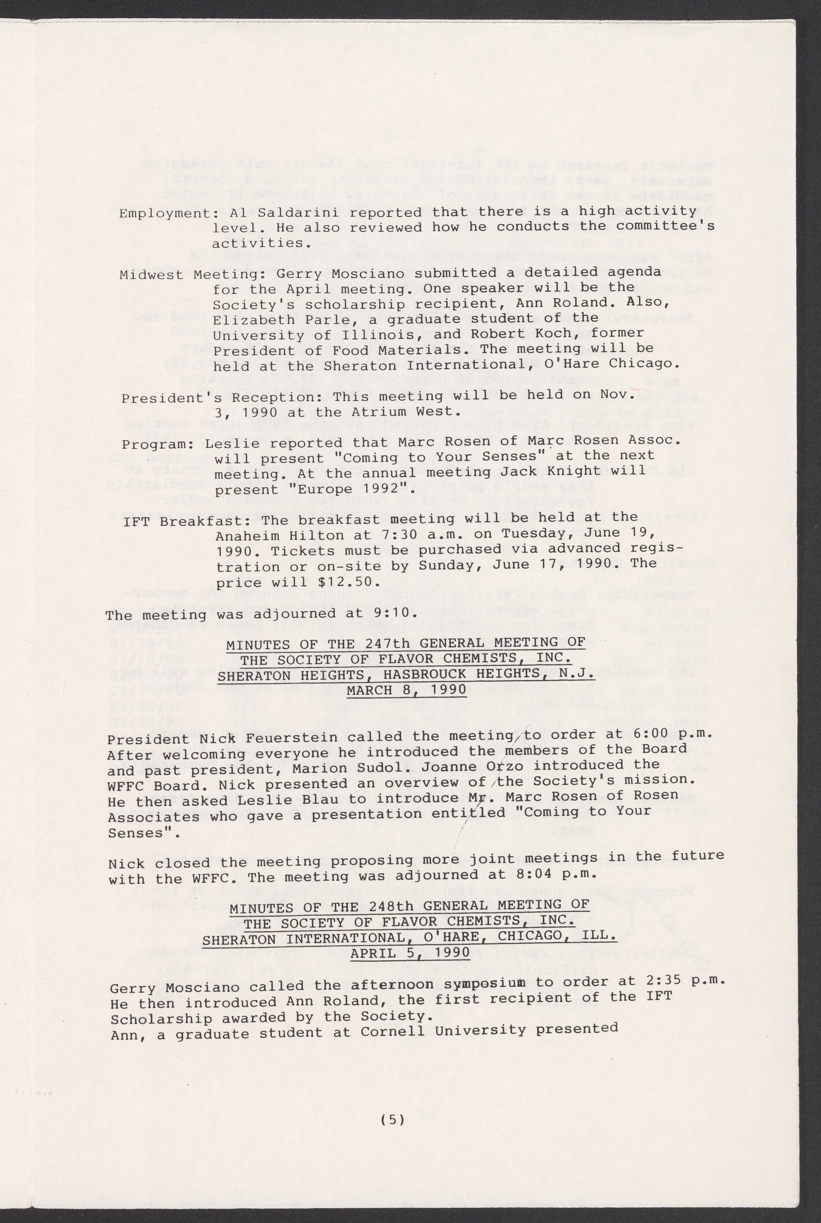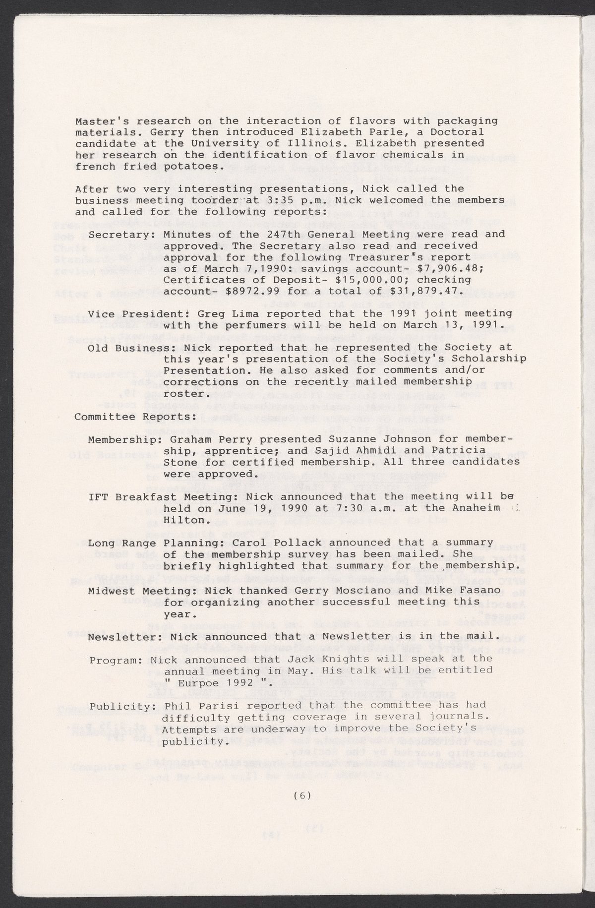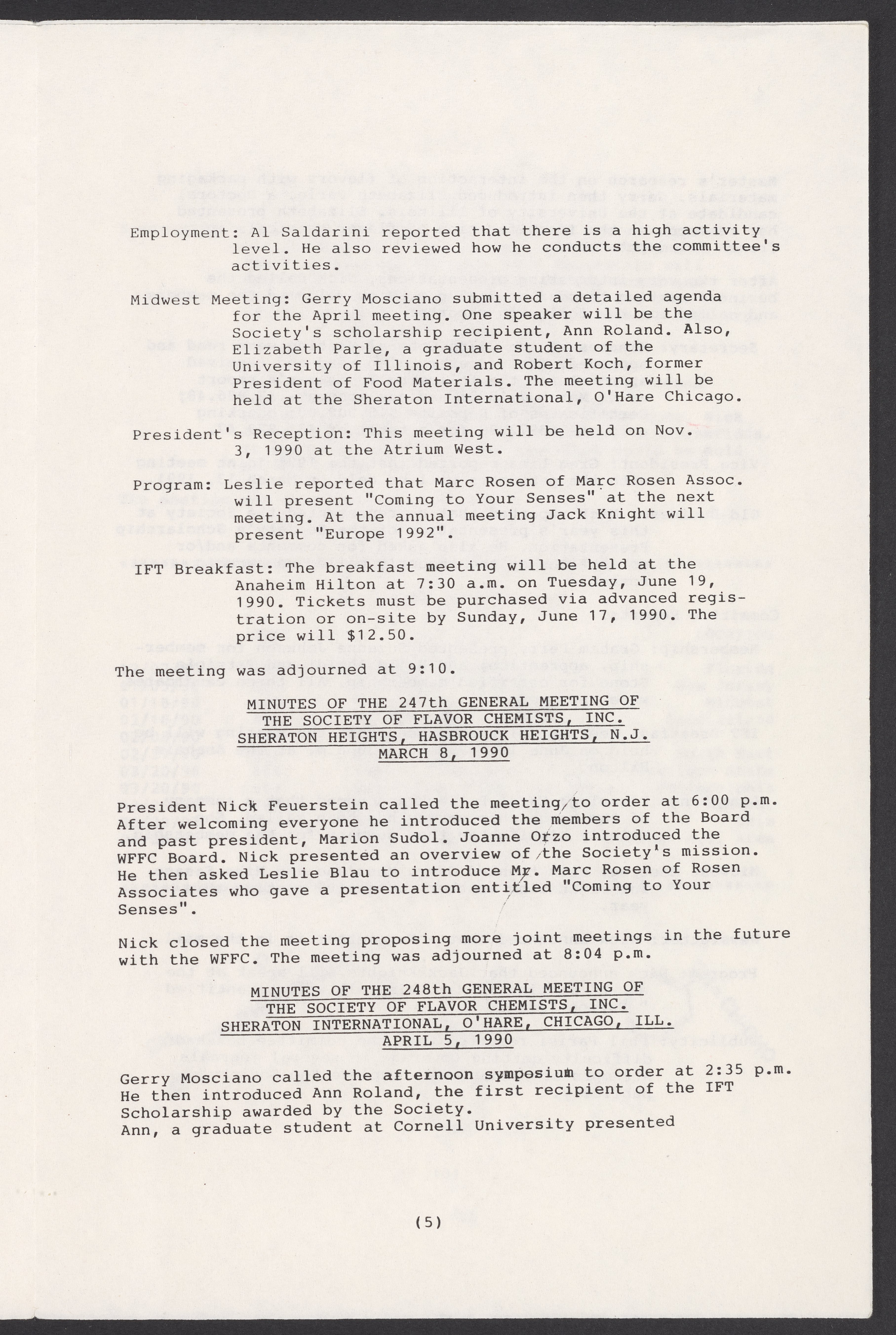 Society of Flavor Chemists. “Society of Flavor Chemists Newsletter, September 1990,” September 1, 1990. Society of Flavor Chemists Newsletters , Box 1, Folder 1. Science History Institute. Philadelphia. https://digital.sciencehistory.org/works/akm4re4.