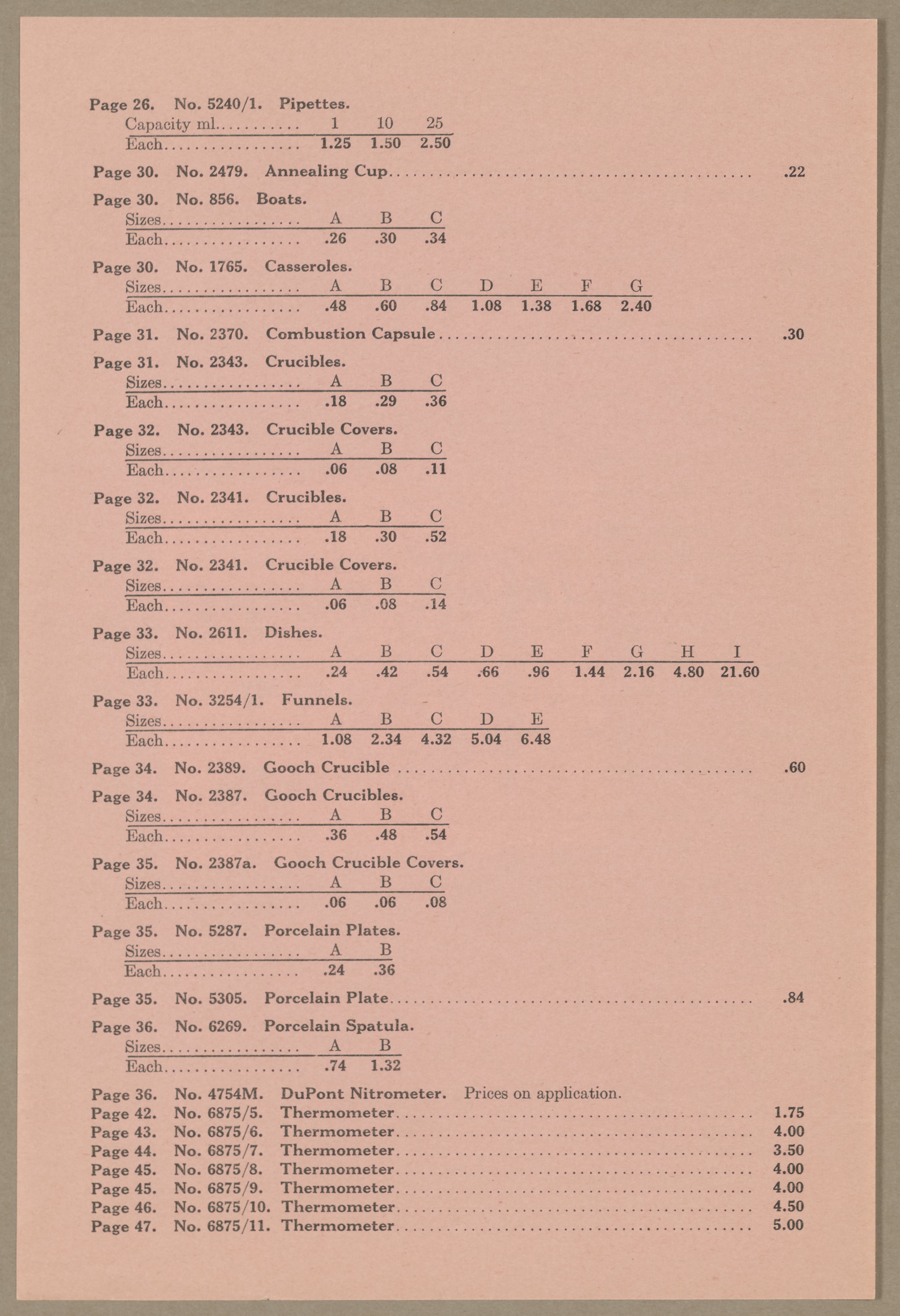 “Standard Laboratory Apparatus Adopted by the Manufacturing Chemists Association of the United States Part 1.” New York, New York: Eimer & Amend, 1922. Q184 .E56 1922. Science History Institute. Philadelphia. https://digital.sciencehistory.org/works/altvkck.