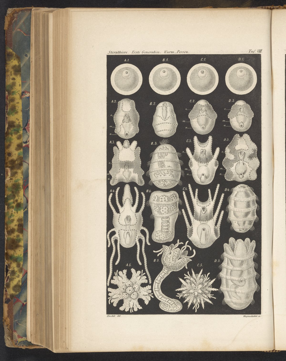 Haeckel, Ernst. “Plate VIII: Invertebrate Development.” Natürliche Schöpfungsgeschichte: Gemeinverständliche Wissenschaftliche Vorträge Über Die Entwickelungslehre. Berlin, Germany: G. Reimer, 1872. Science History Institute. Philadelphia. https://digital.sciencehistory.org/works/anyl20z.