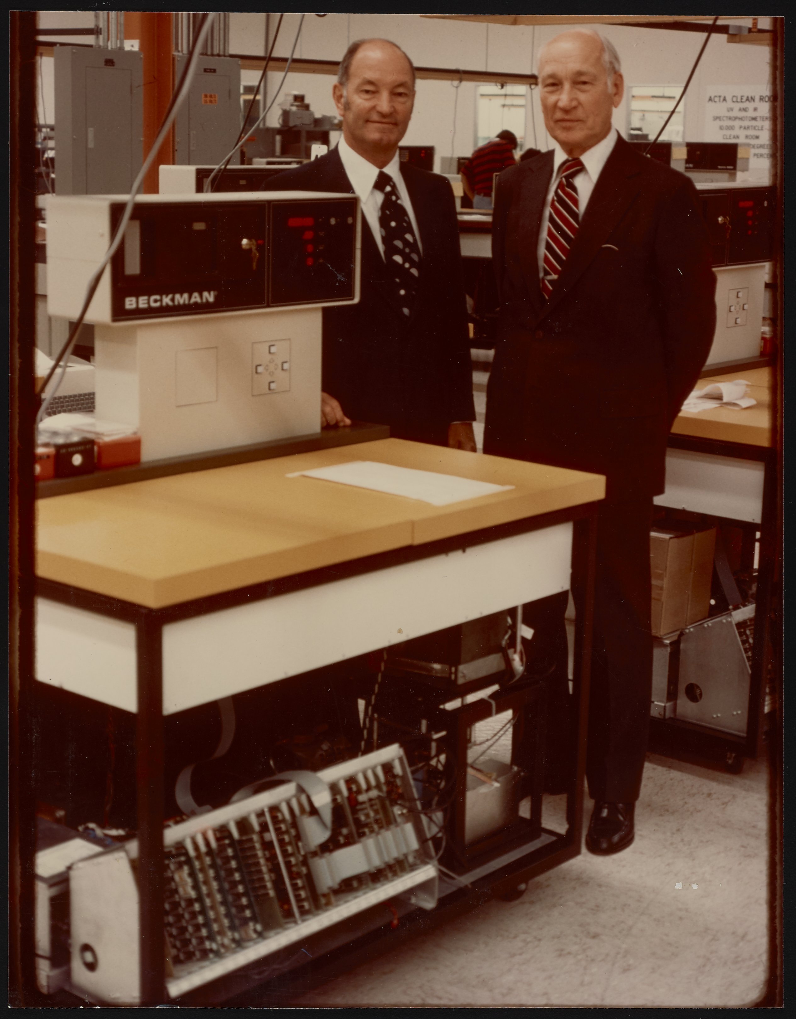 “William Ballhaus and Arnold O. Beckman,” 1980. Beckman Historical Collection, Box 55, Folder 150. Science History Institute. Philadelphia. https://digital.sciencehistory.org/works/b2773v71t.