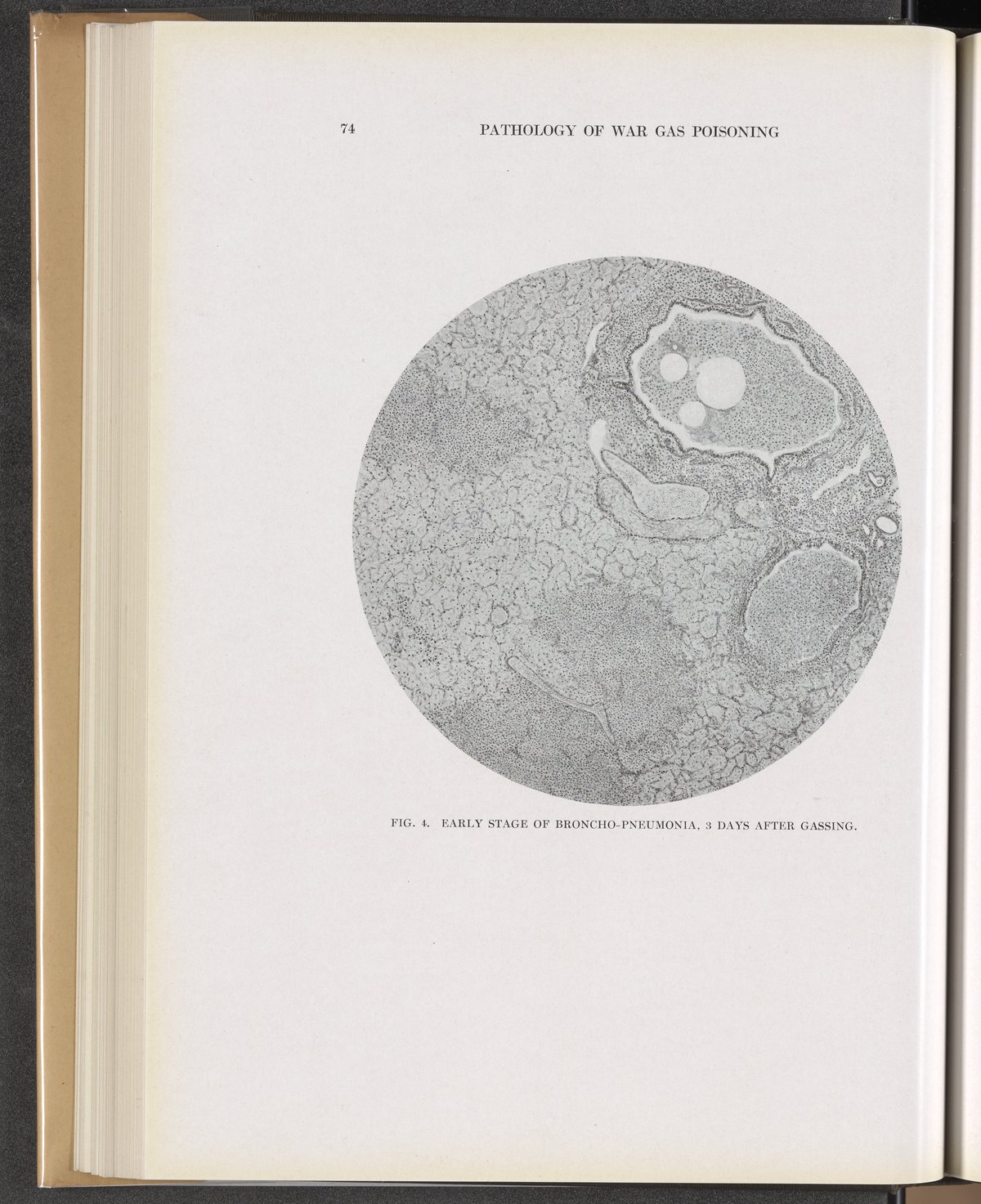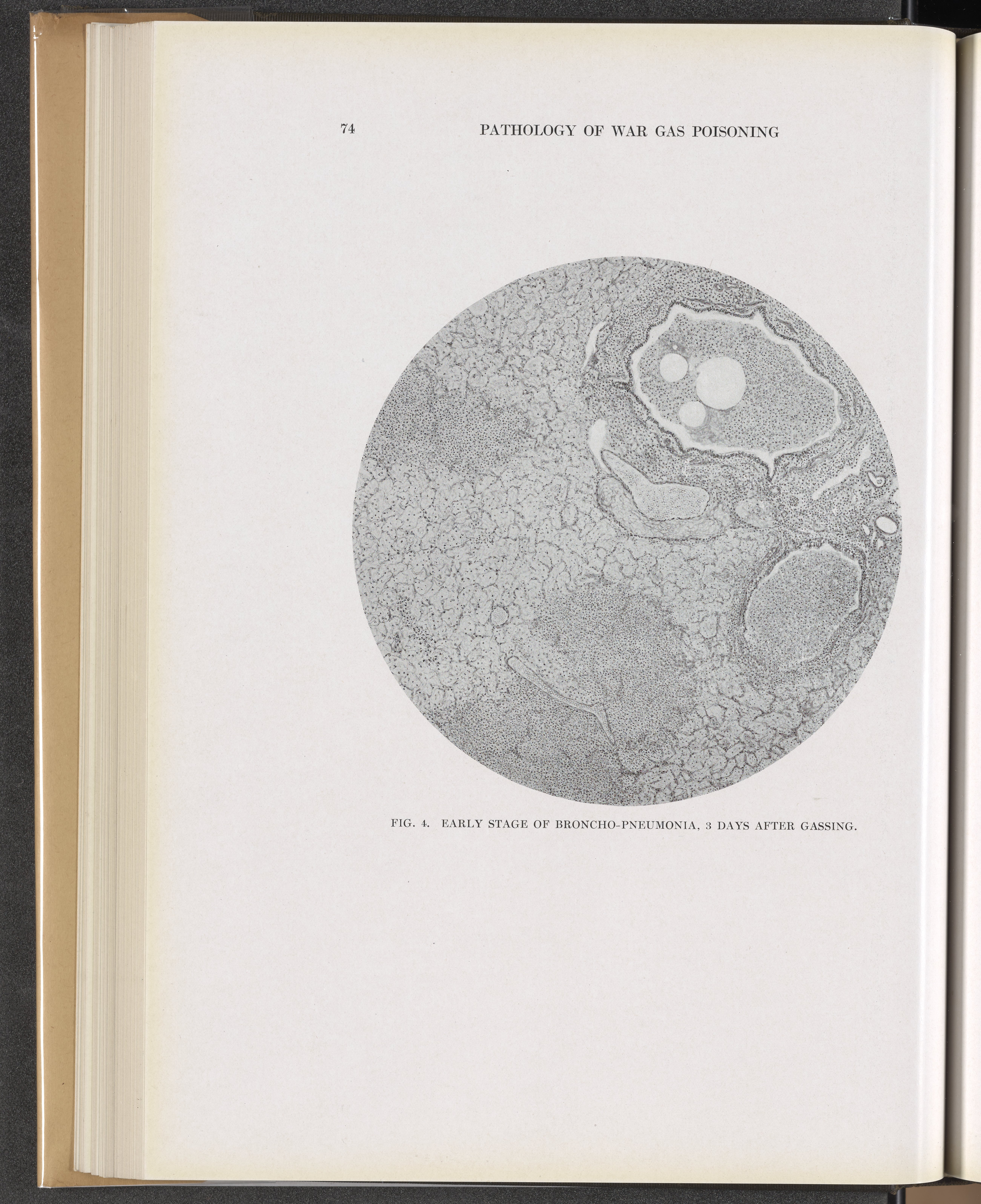 Winternitz, M. C. (Milton C.). “Fig. 4: Early Stage of Broncho-Pneumonia, 3 Days after Gassing.” Collected Studies on the Pathology of War Gas Poisoning. New Haven, Connecticut: Yale University Press, 1920. https://digital.sciencehistory.org/works/b2773v855.