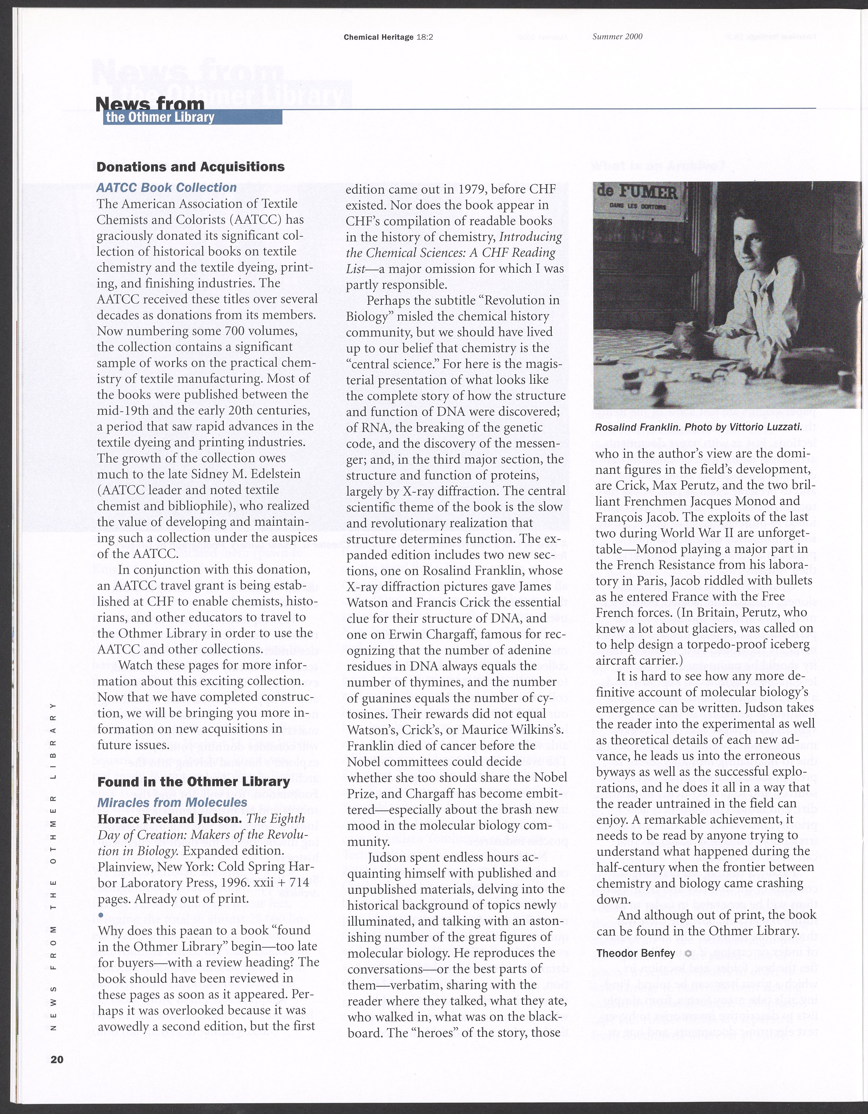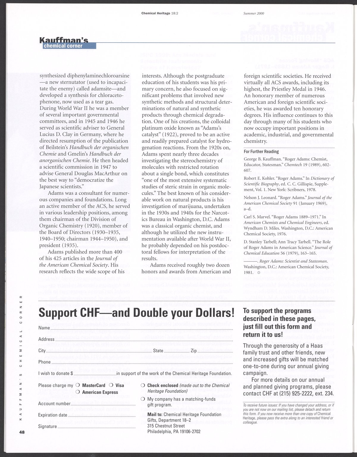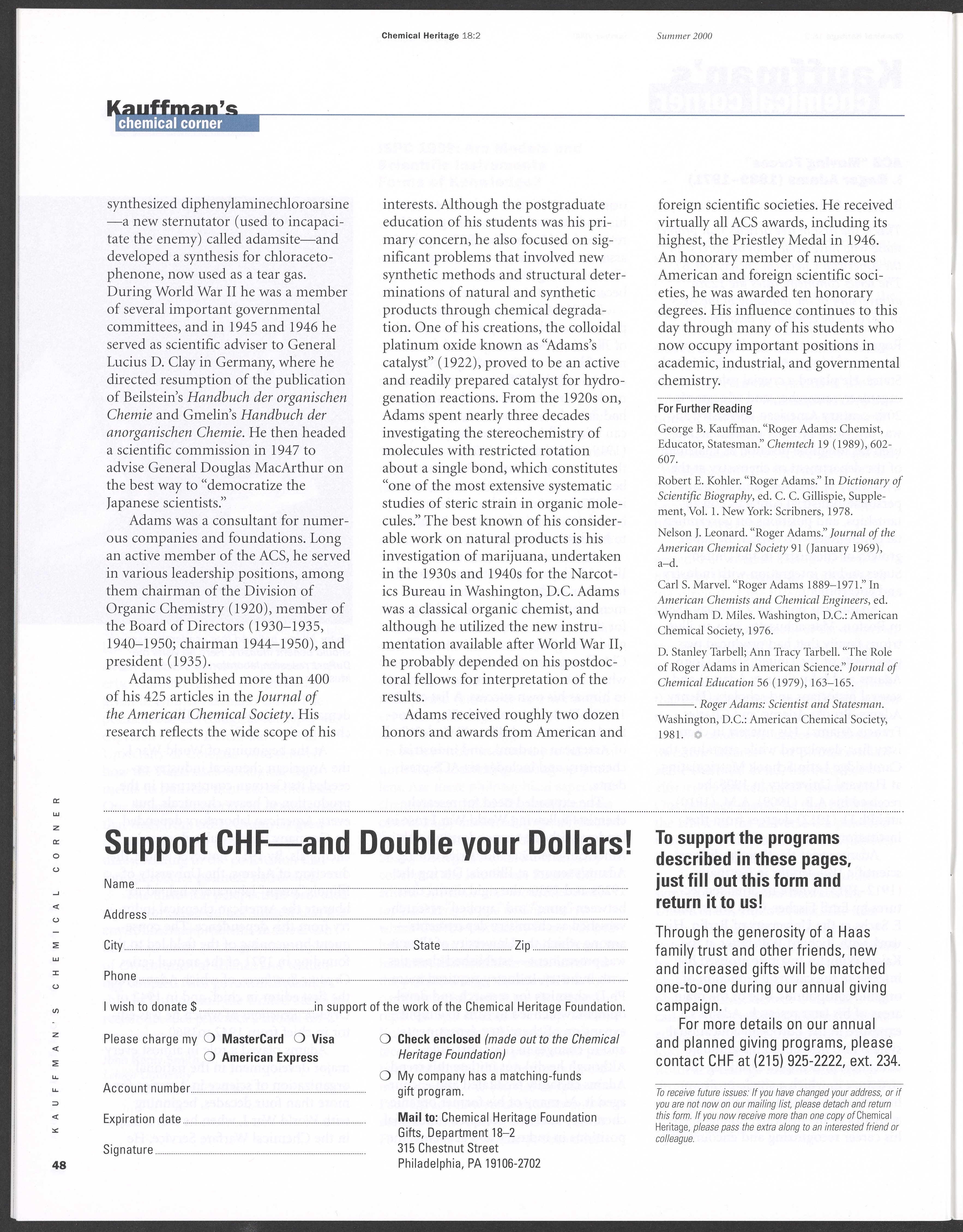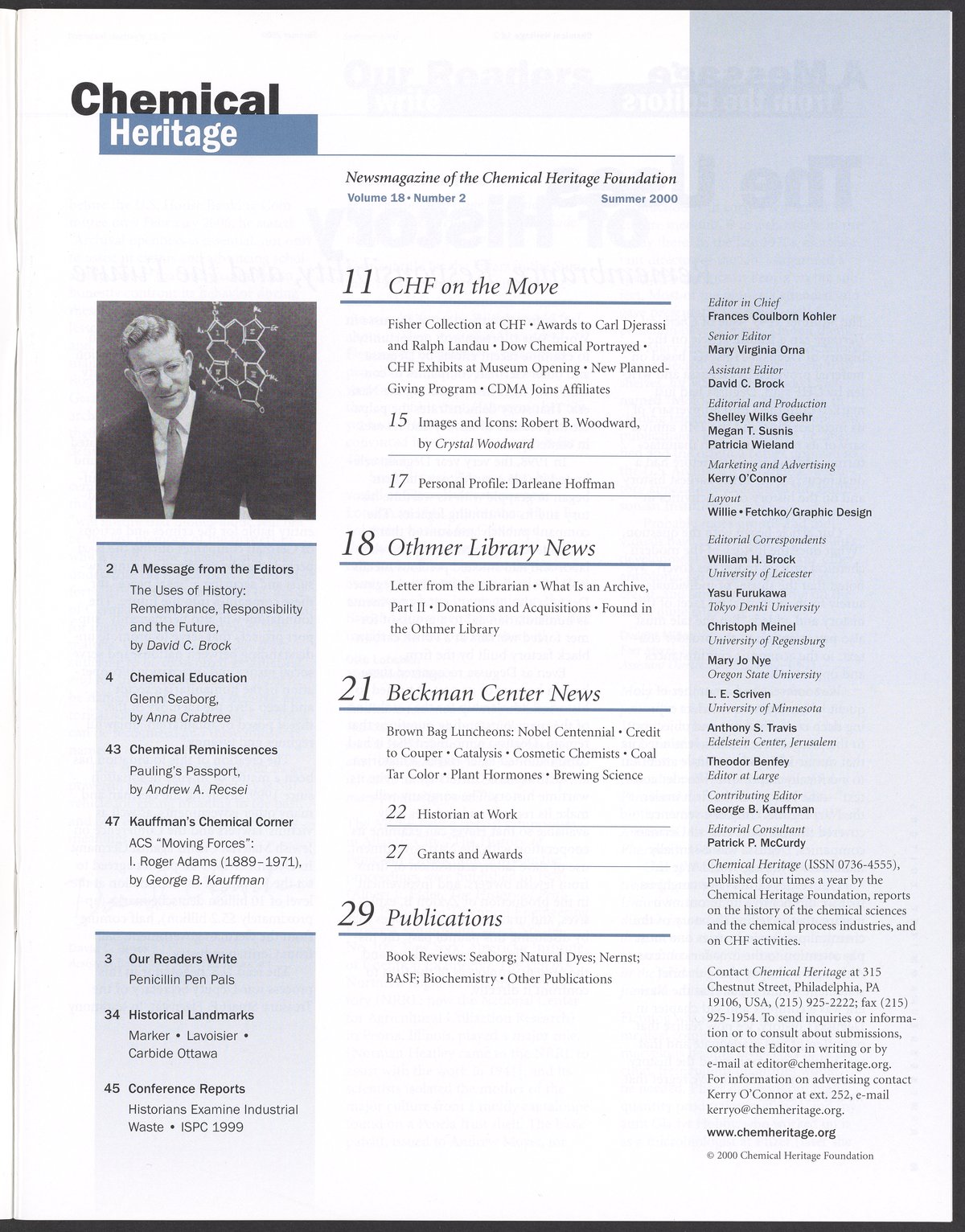 “Chemical Heritage, Volume 18 Number 2.” Philadelphia, Pennsylvania: Chemical Heritage Foundation, 2000. 099C001. Science History Institute. Philadelphia. https://digital.sciencehistory.org/works/b70voje.