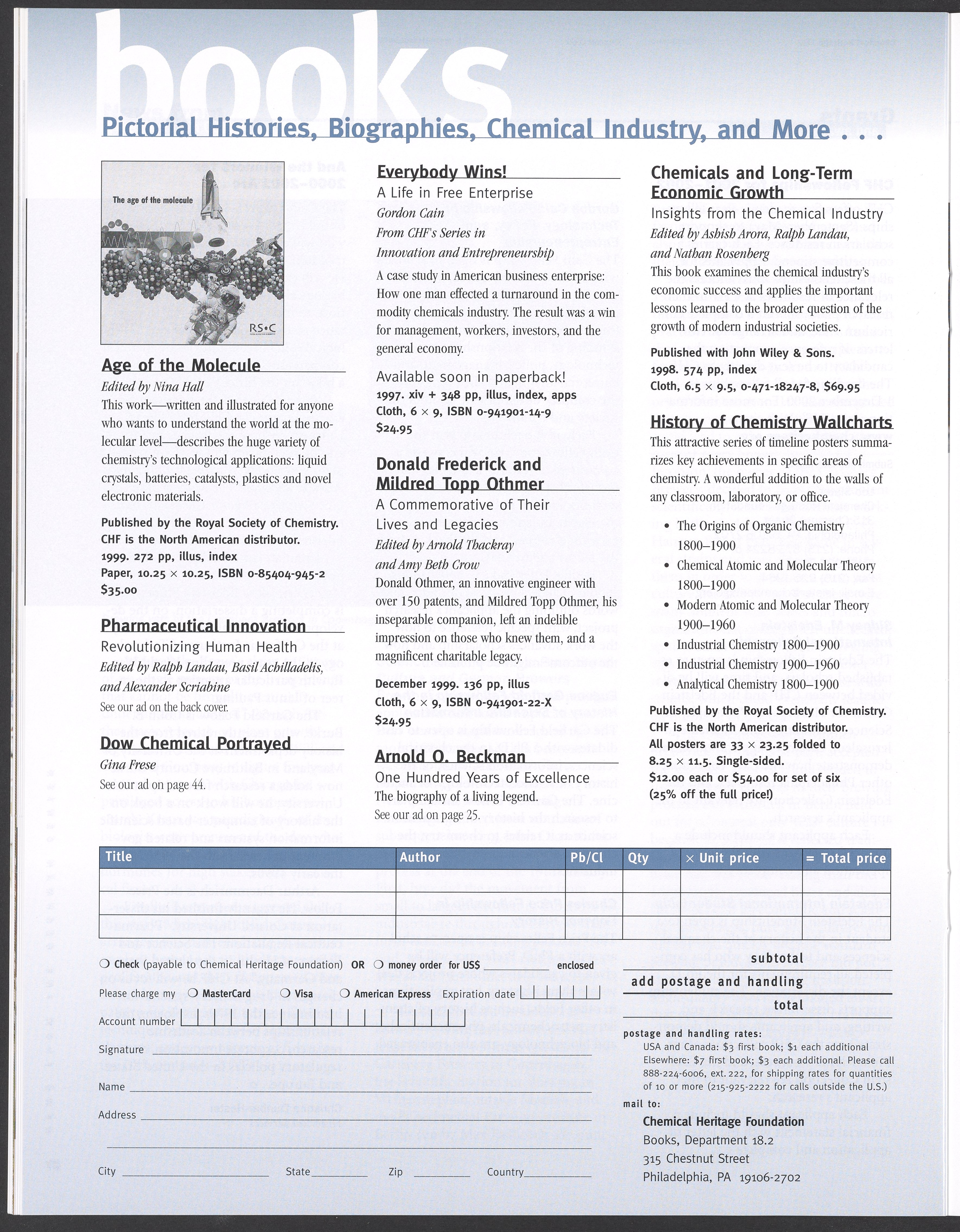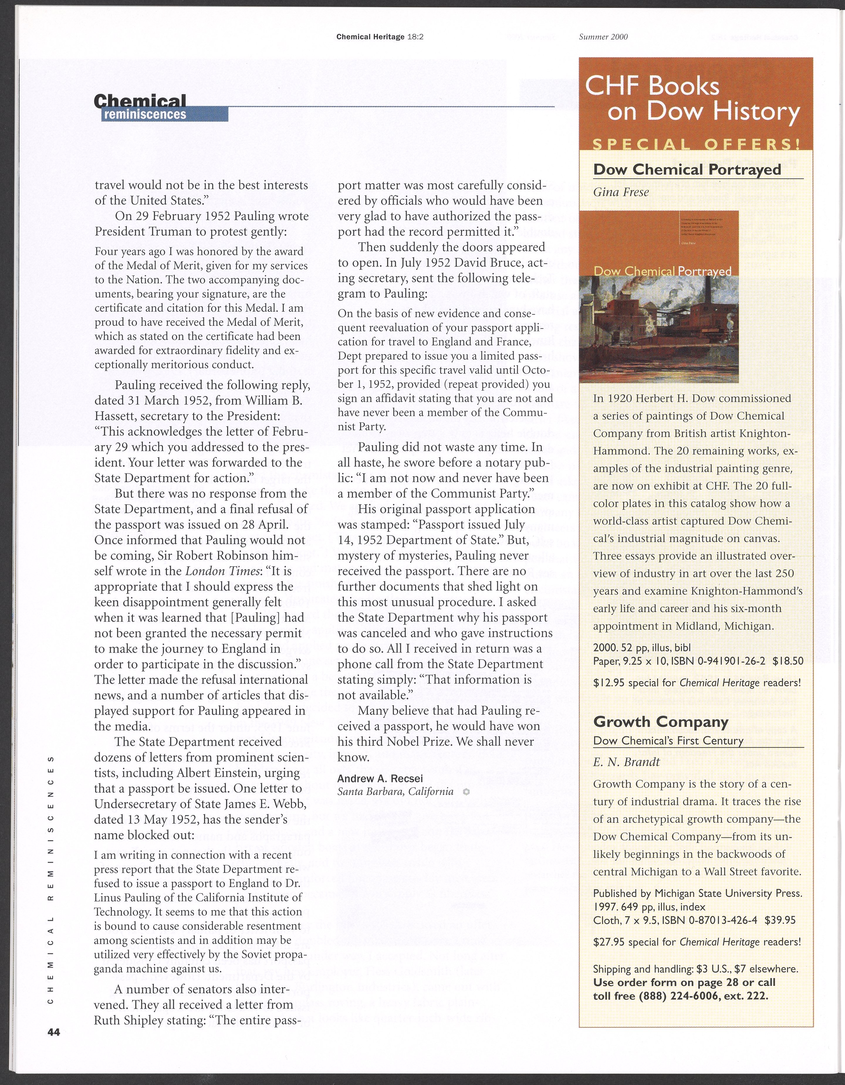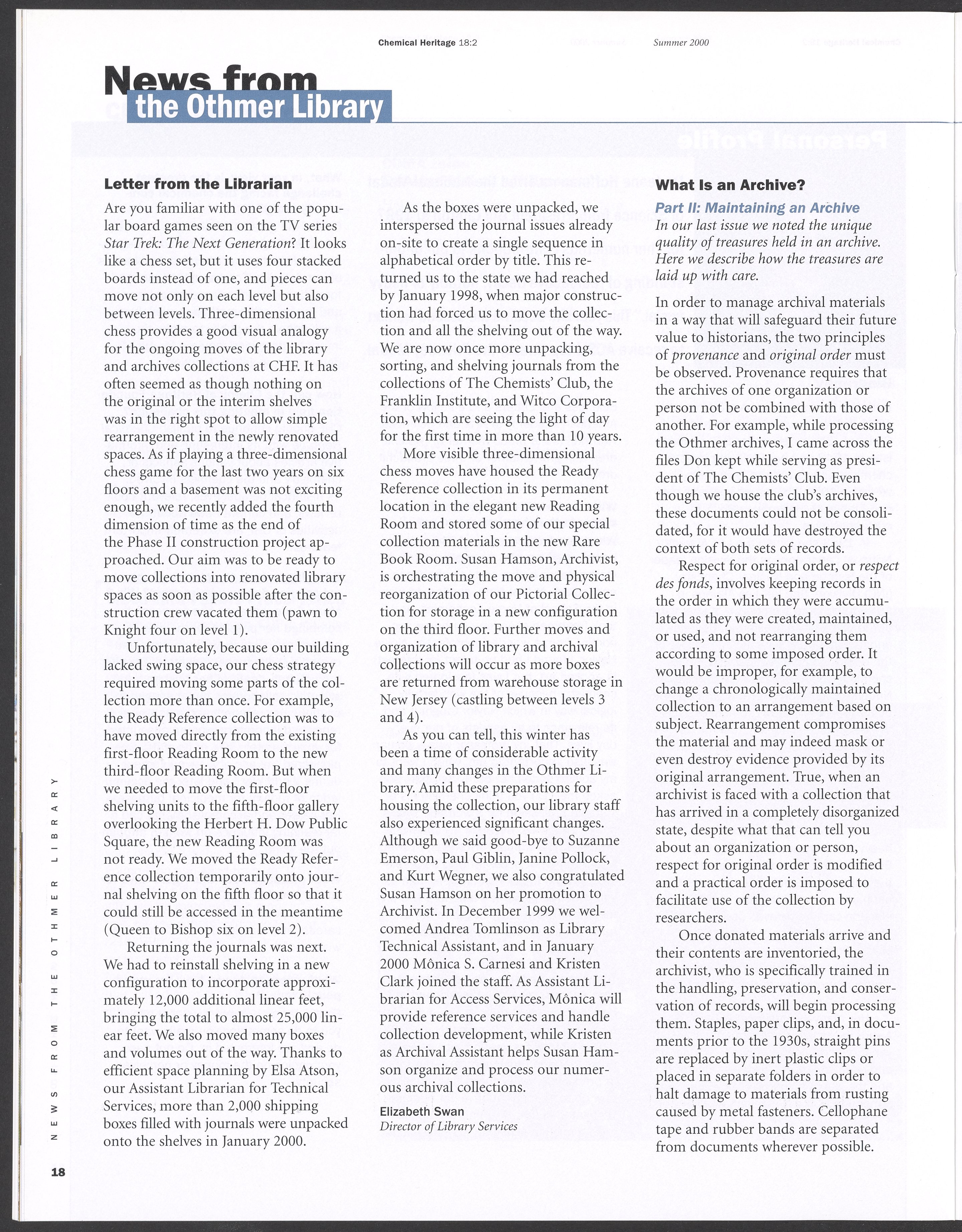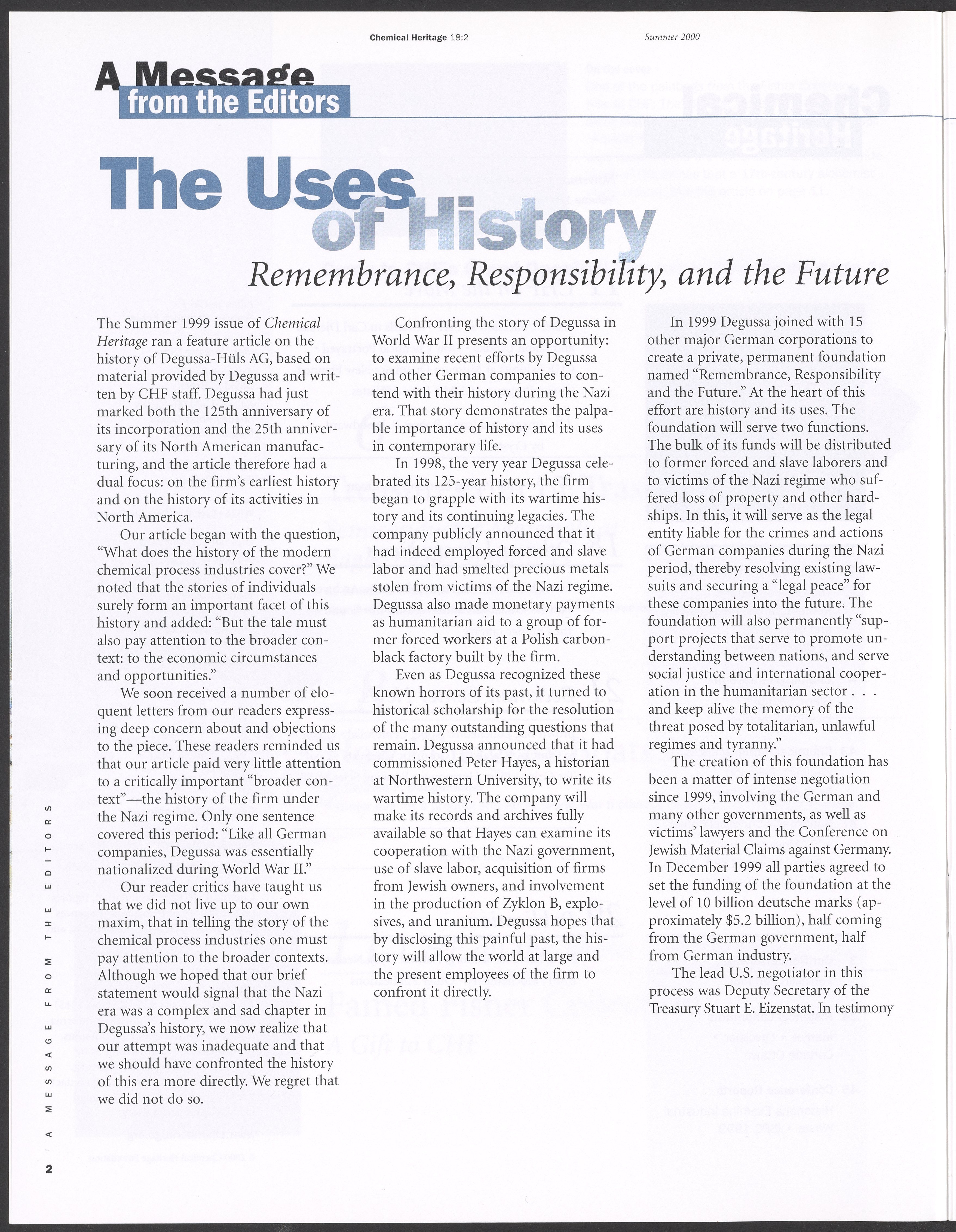“Chemical Heritage, Volume 18 Number 2.” Philadelphia, Pennsylvania: Chemical Heritage Foundation, 2000. 099C001. Science History Institute. Philadelphia. https://digital.sciencehistory.org/works/b70voje.