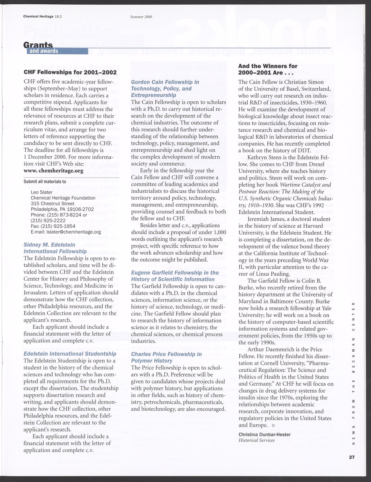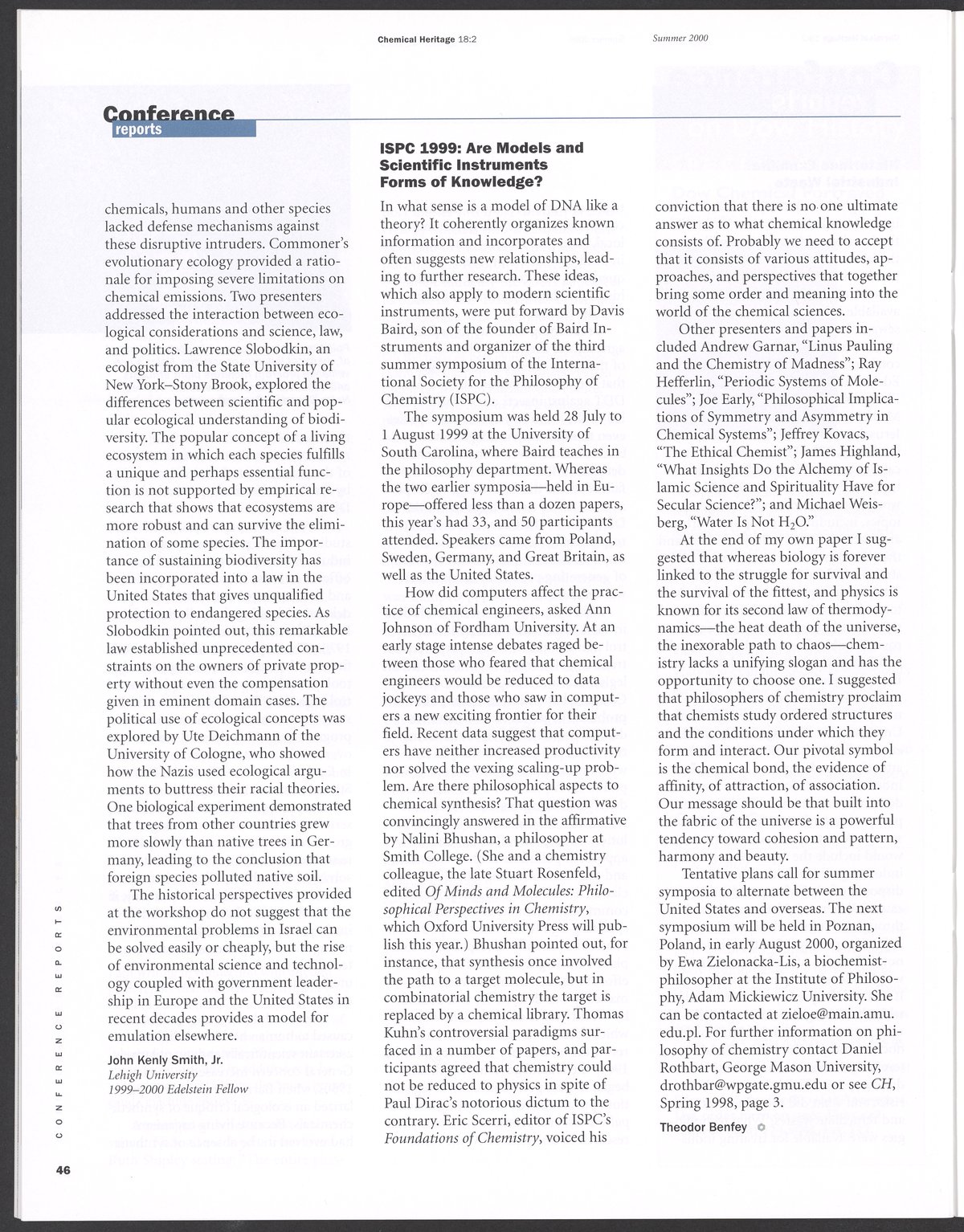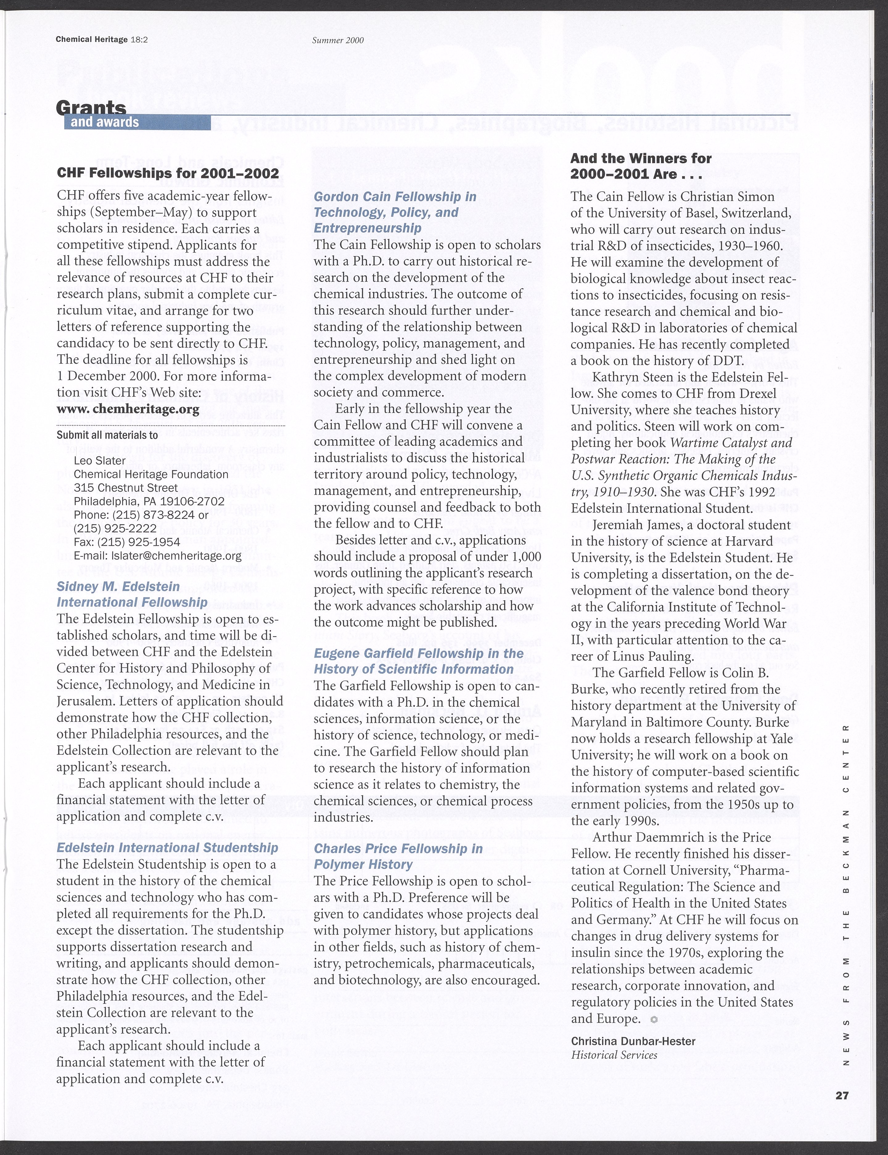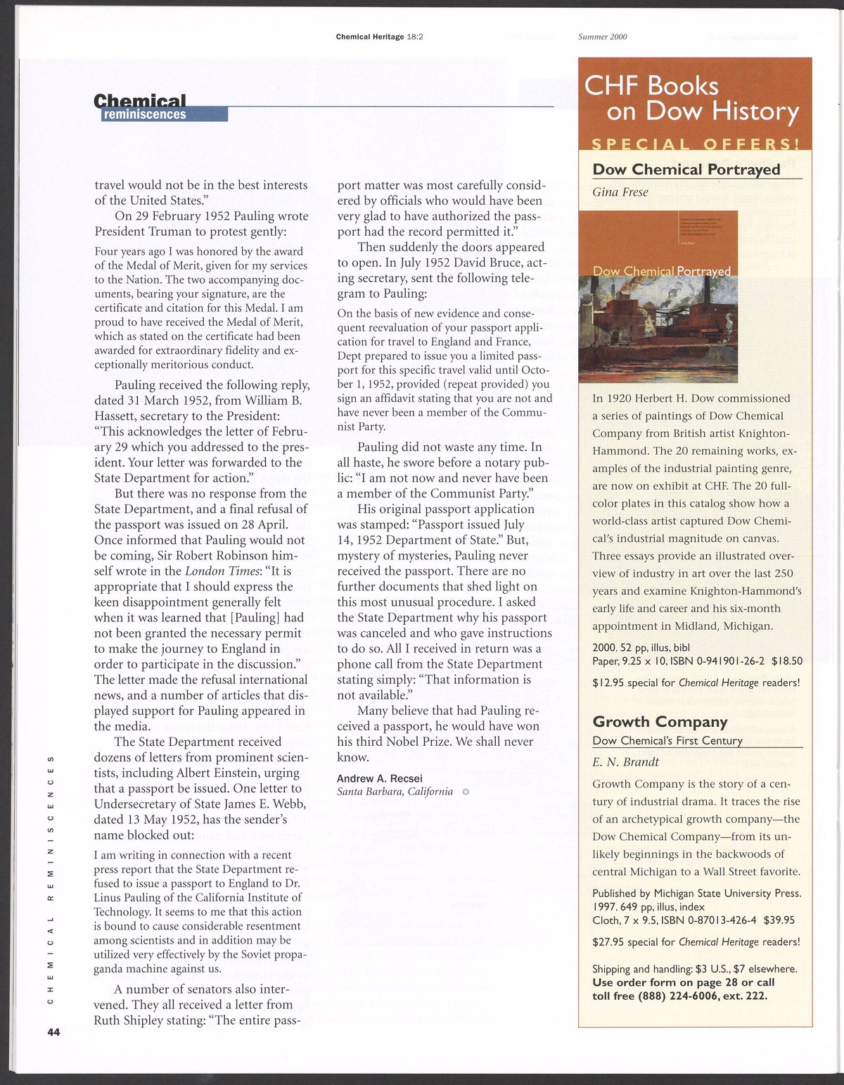 “Chemical Heritage, Volume 18 Number 2.” Philadelphia, Pennsylvania: Chemical Heritage Foundation, 2000. 099C001. Science History Institute. Philadelphia. https://digital.sciencehistory.org/works/b70voje.