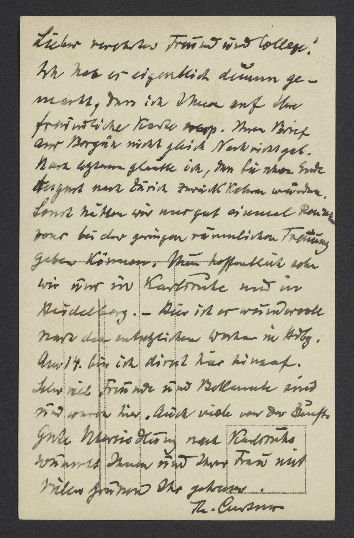 Postcard from Theodor Curtius to Georg Bredig