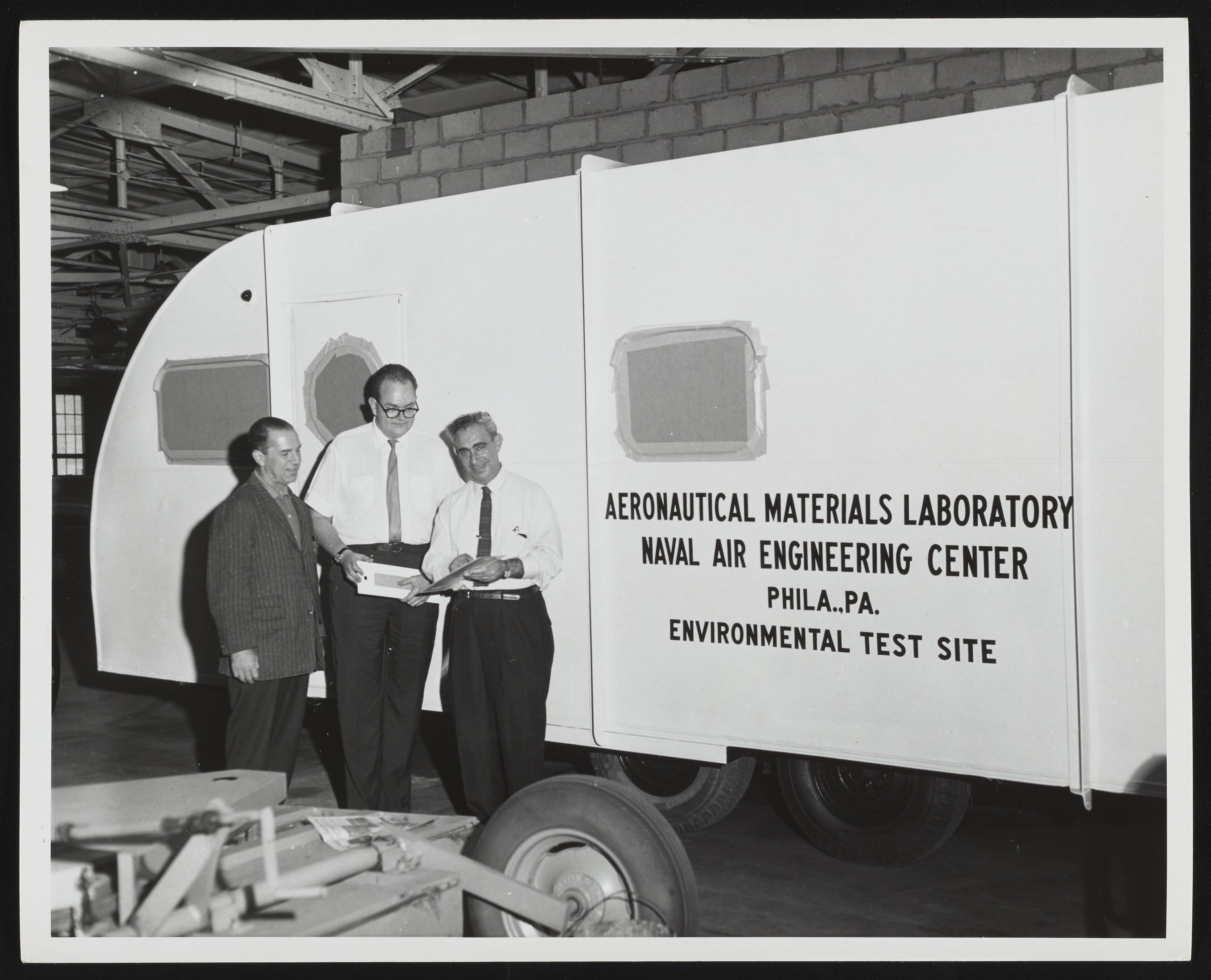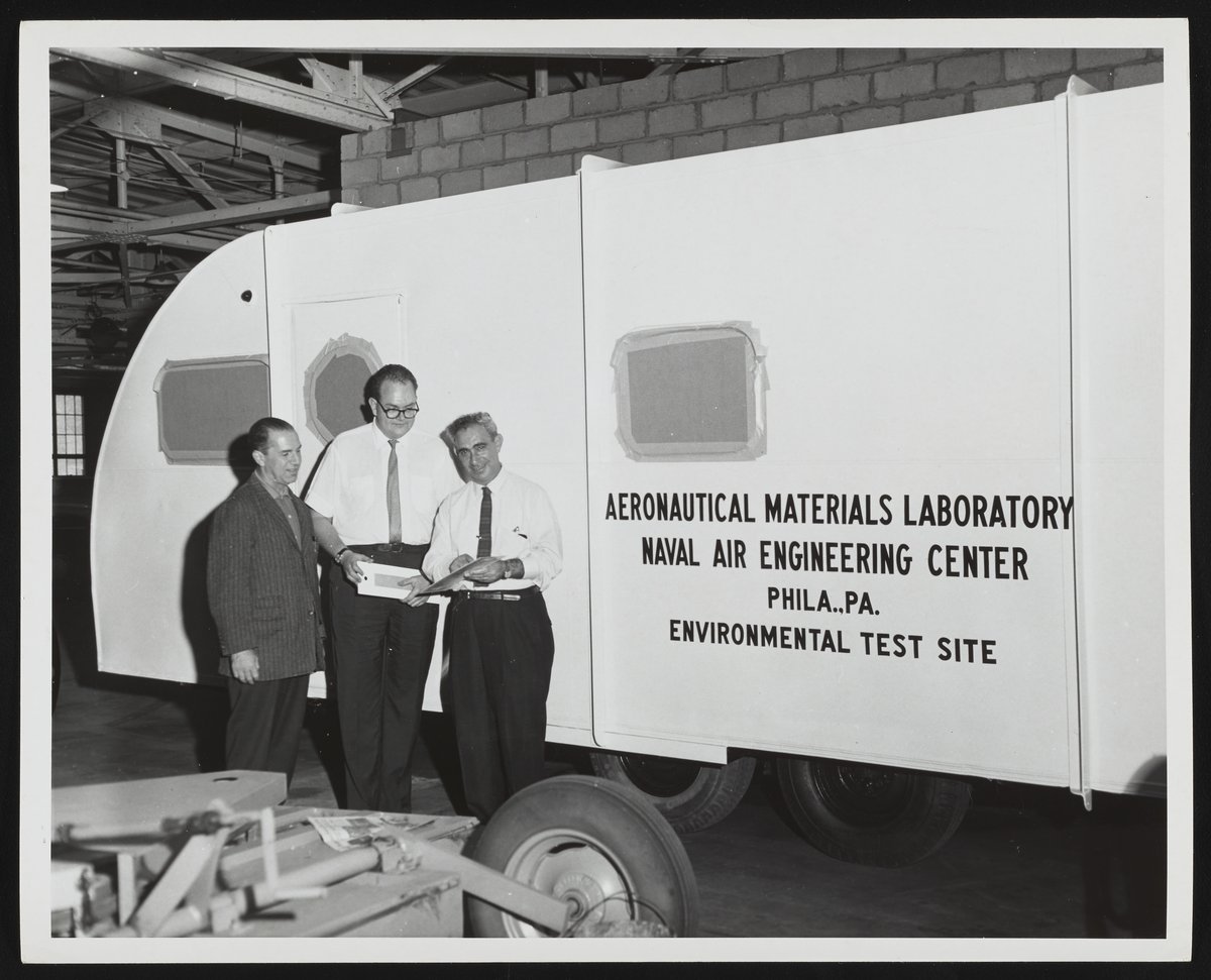 United States. Navy, and Naval Air Engineering Center (U.S.). “Aeronautical Materials Laboratory Test Site Trailer,” circa 1966. Photographs from the Papers of J. Hartley Bowen, Box 1. Science History Institute. Philadelphia. https://digital.sciencehistory.org/works/b8515n388.