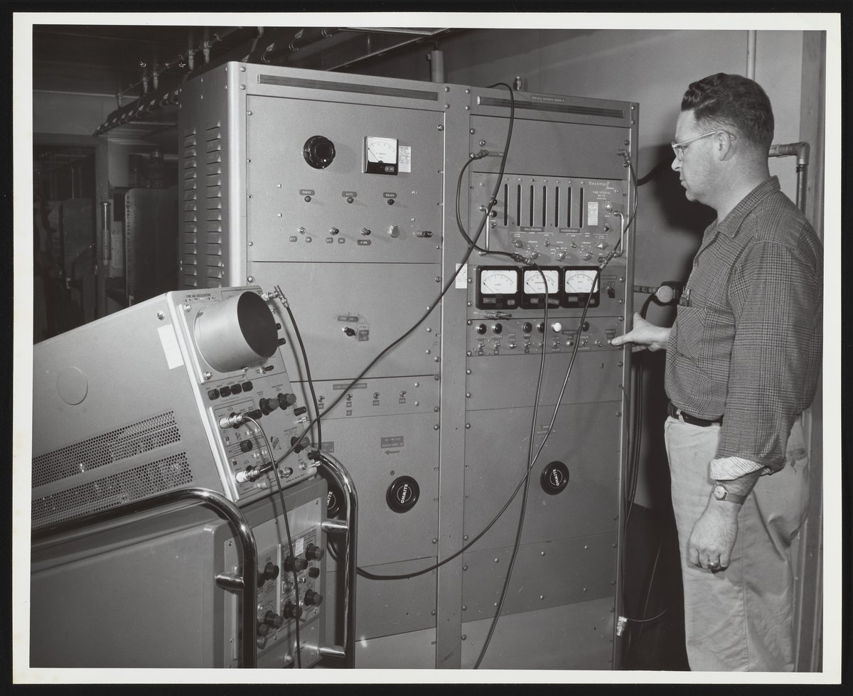 Hercules Incorporated. “Employee Operating Beckman (Berkeley) Time Interval Meter at Hercules Port Ewen Plant,” 1962. Photographs from the Records & Ephemera of Hercules Incorporated, Box 2, Folder 38. Science History Institute. Philadelphia. https://digital.sciencehistory.org/works/b8515n81j.