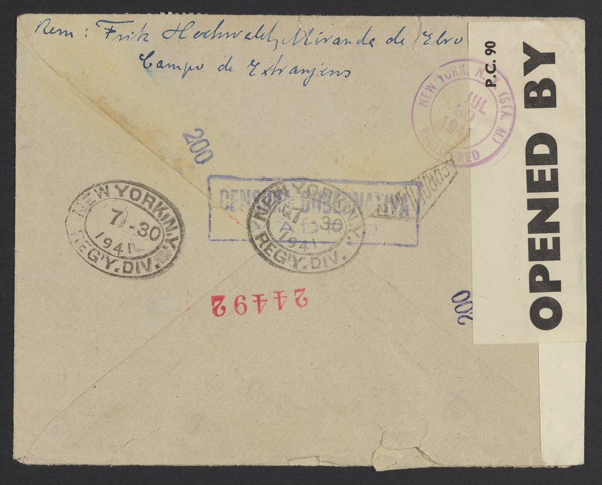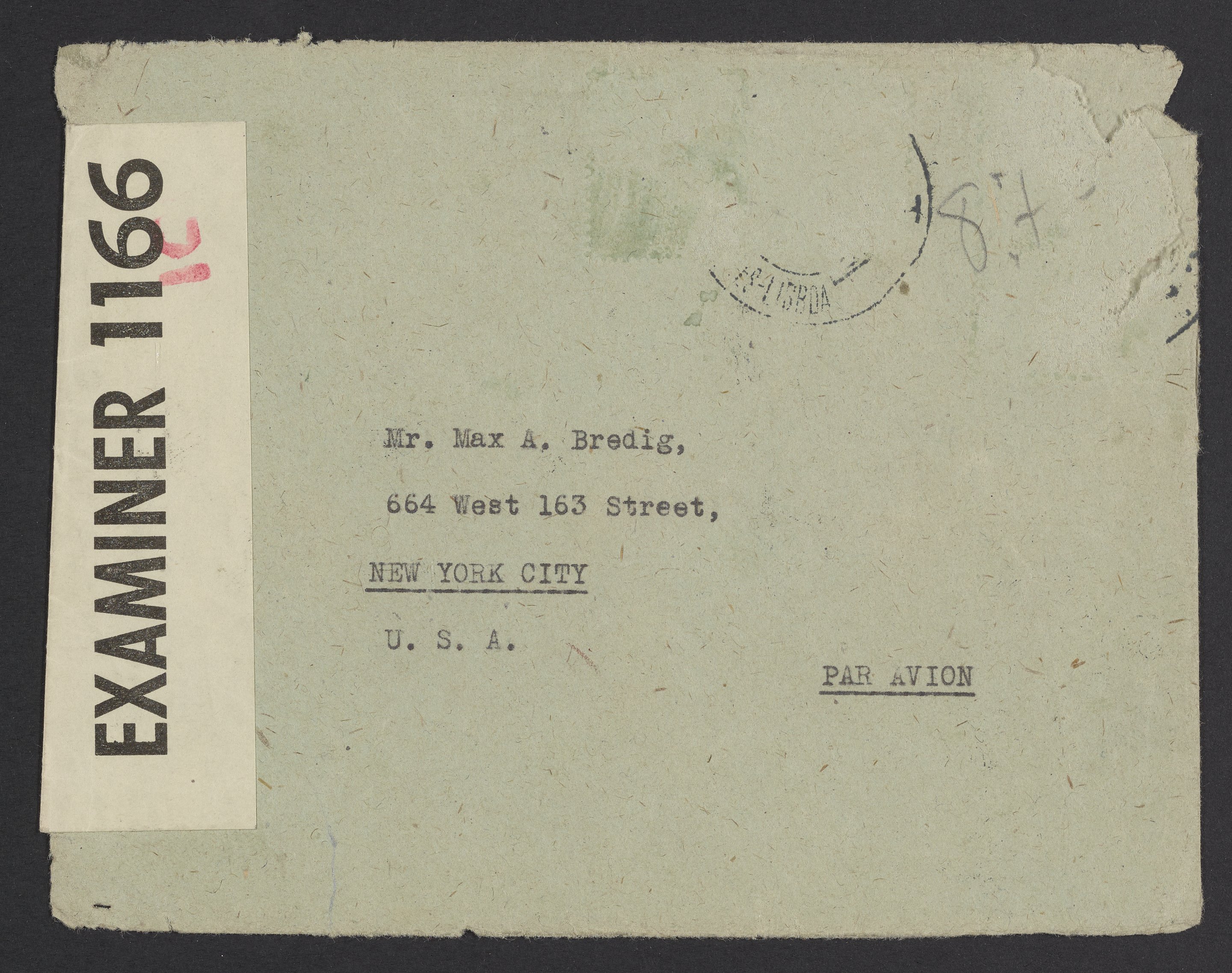 Hochwald, Fritz G. “Envelopes from Fritz Hochwald to Max Bredig,” 1941–1942. Papers of Georg and Max Bredig, Box 8, Folder 16. Science History Institute. Philadelphia. https://digital.sciencehistory.org/works/barnfzi.