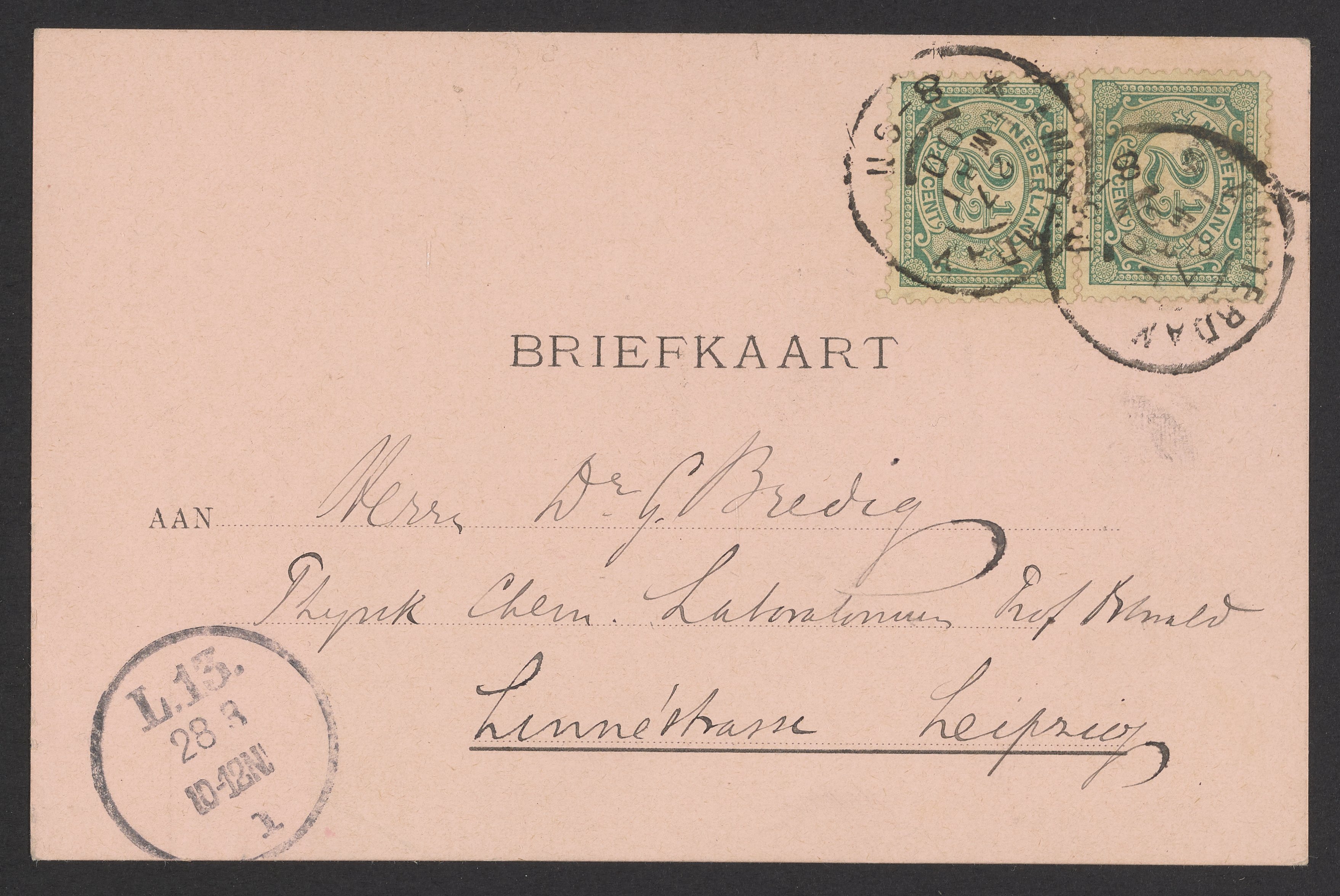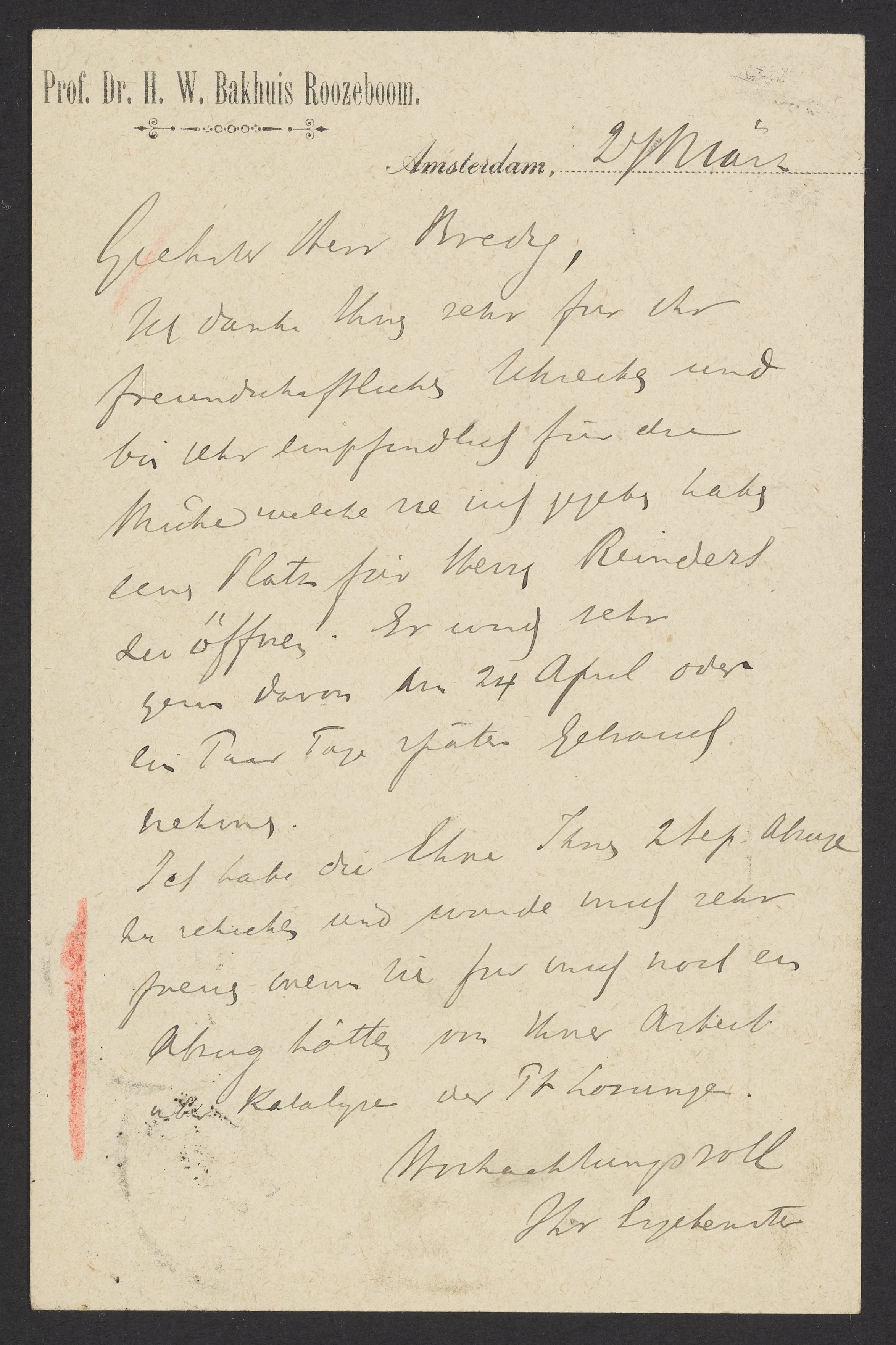 Postcard from Hendrik Willem Bakhuis Roozeboom to Georg Bredig, March 1900