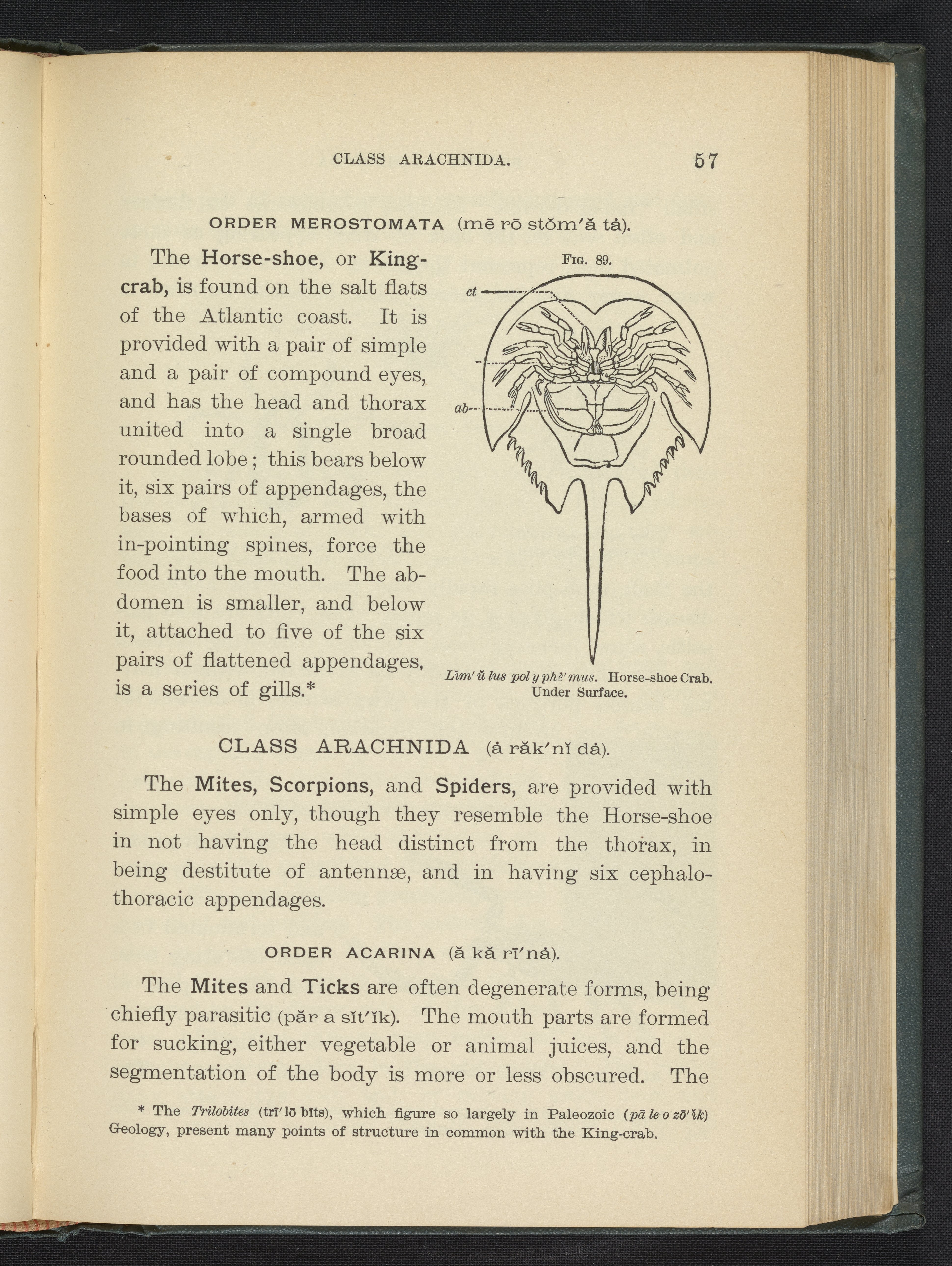 Steele, Joel Dorman, and Jenks, J. W. P. (John Whipple Potter). “Figure 89. Horse-Shoe Crab. Under Surface.” Popular Zoology. New York, New York: Chautauqua Press, 1887. https://digital.sciencehistory.org/works/bbix1uf.