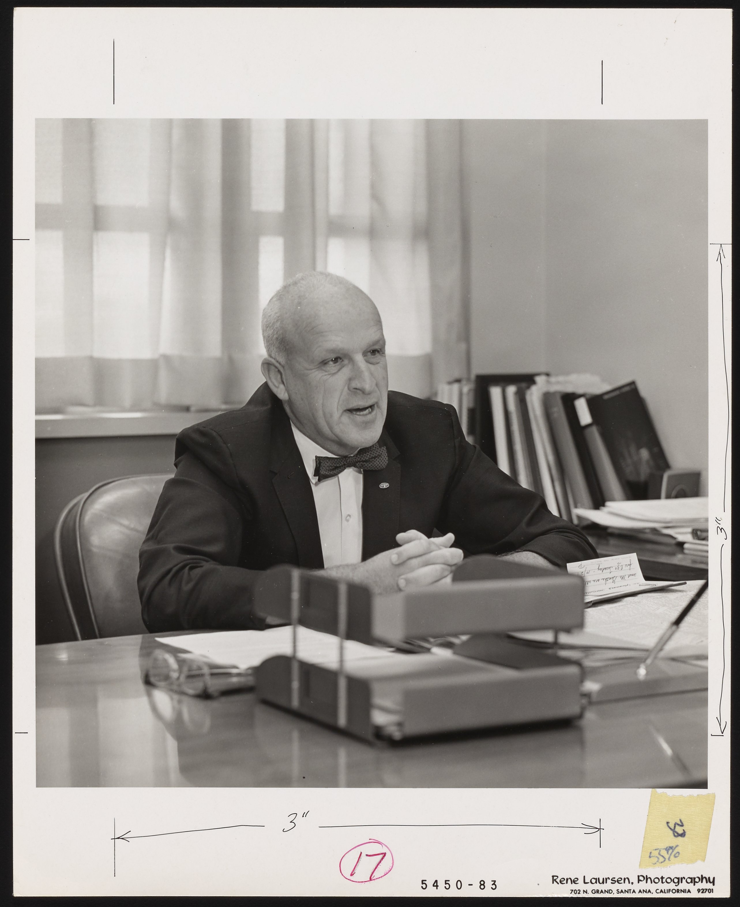 Donald Strauss was first hired by Beckman Instruments in 1952 as director of employee relations, and he would go on to become vice president of administration before he retired in 1989. He was also mayor of Newport Beach, 1988-1989.