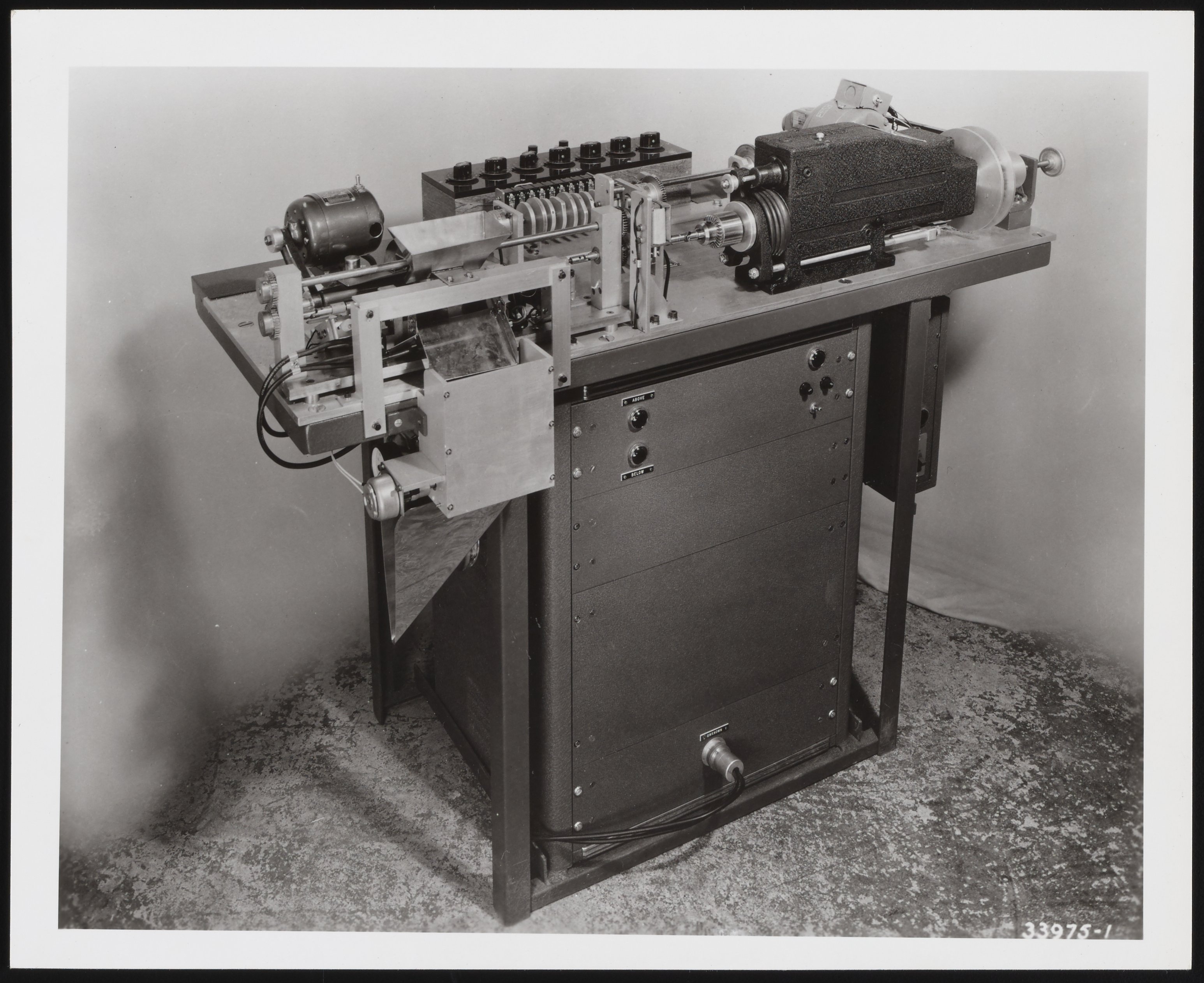“Beckman Model AB-2 Single Point Controller with Model ABL Spiraling Lathe,” n.d. Beckman Historical Collection, Box 79. Science History Institute. Philadelphia. https://digital.sciencehistory.org/works/bc386j324.