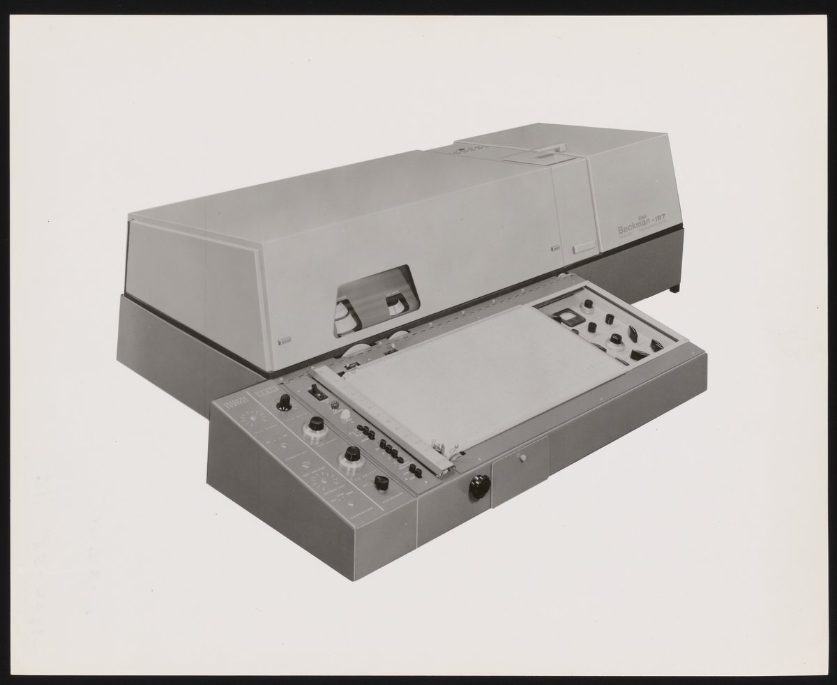 “Beckman IR-7 Spectrophotometer,” 1960. Beckman Historical Collection, Box 55, Folder 155. Science History Institute. Philadelphia. https://digital.sciencehistory.org/works/bg257f14f.